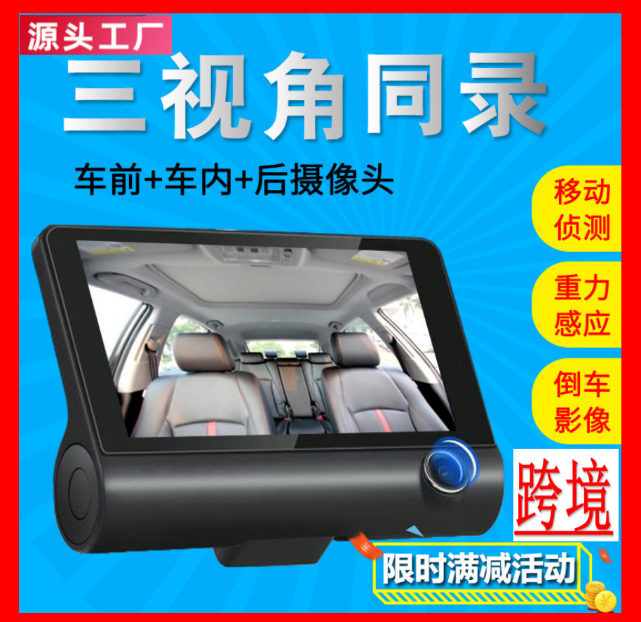 C309 크로스 보더 S1 3 기록 주행 레코더 1080P 대형 광각 3 렌즈 자동차 레코더 반전스토어 가기