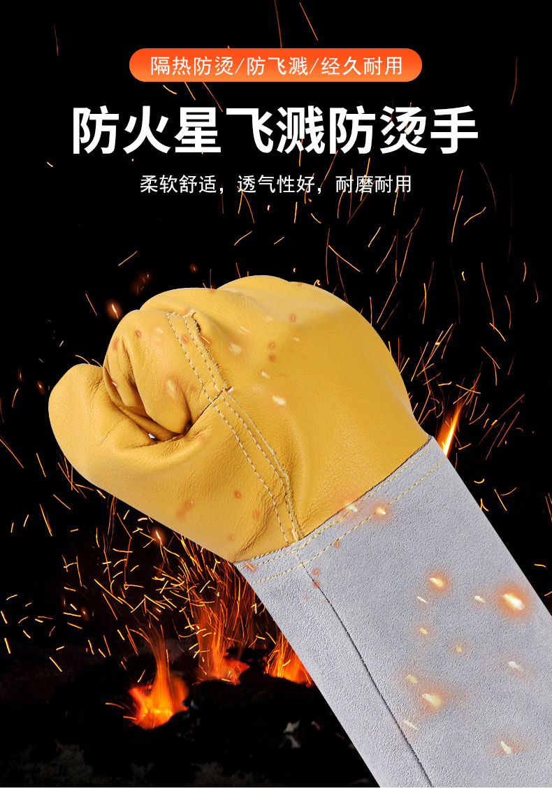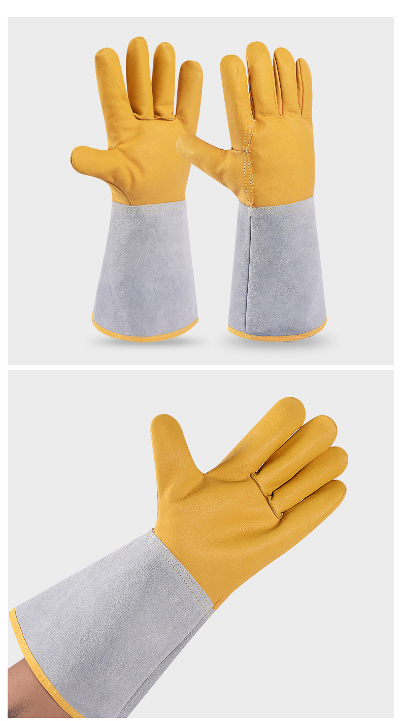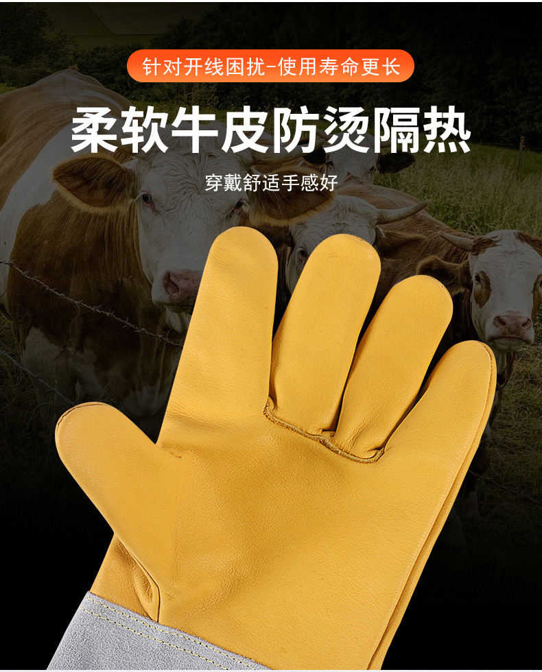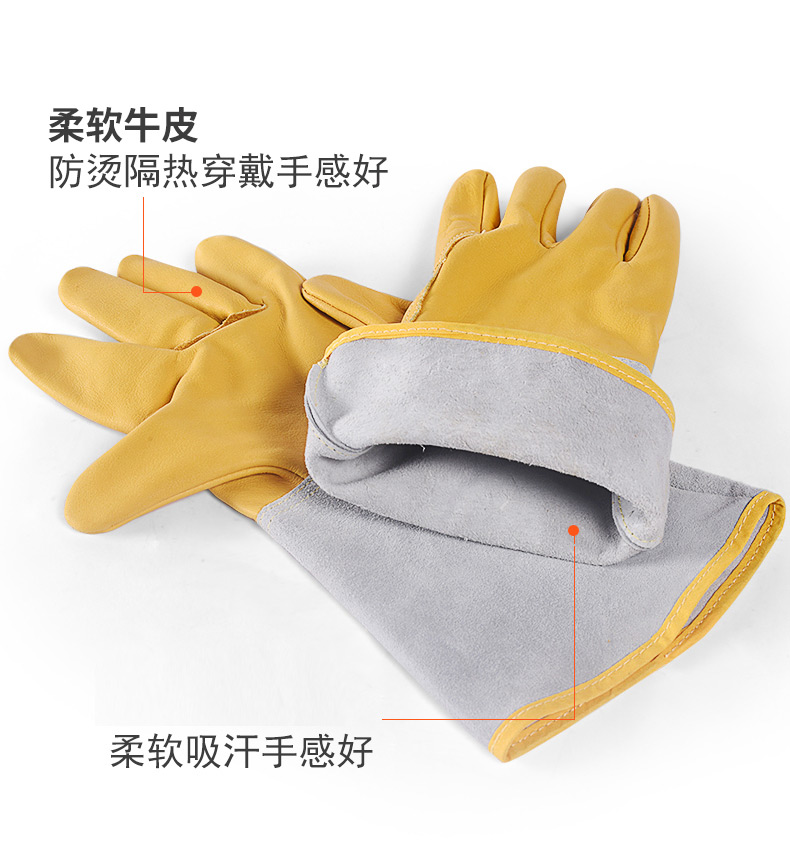 용접 장갑 소 가죽 고온 저항하는 용접기 장갑 긴 안티 scald 내마모성 부드러운 긴 용접 노동 보호 특수