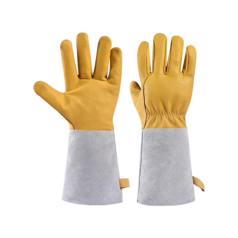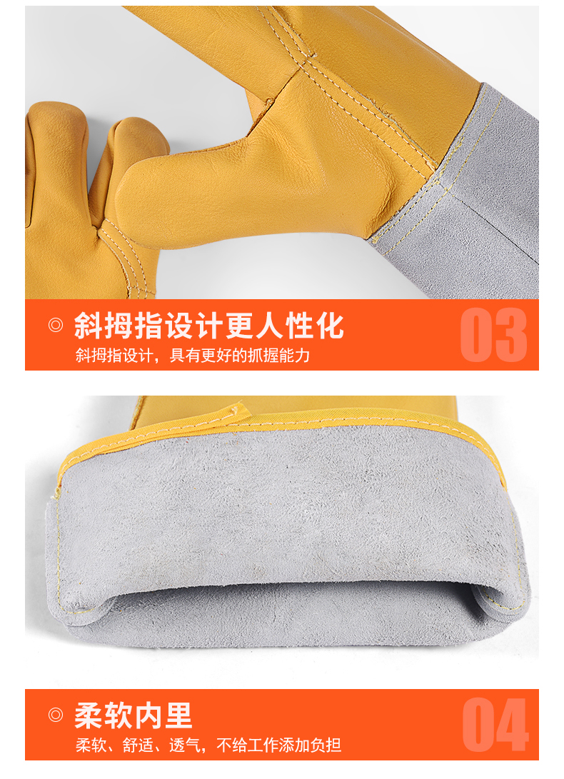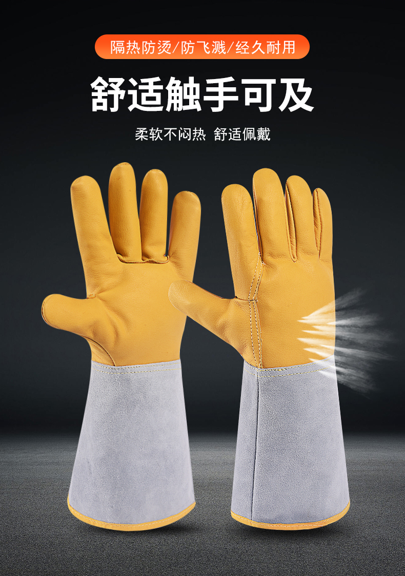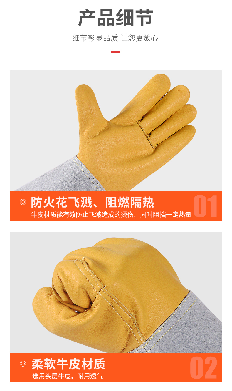 용접 장갑 소 가죽 고온 저항하는 용접기 장갑 긴 안티 scald 내마모성 부드러운 긴 용접 노동 보호 특수