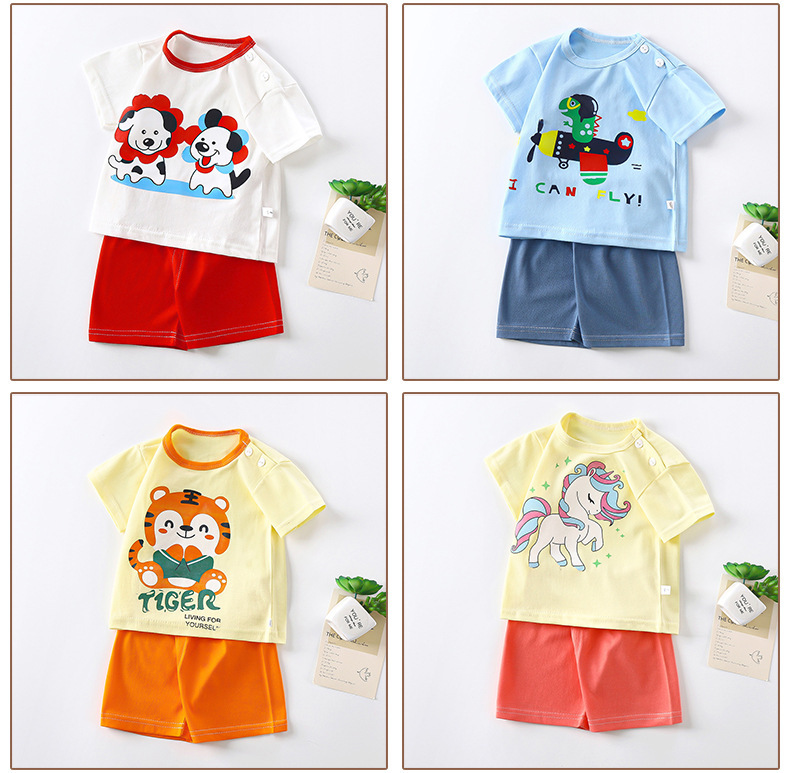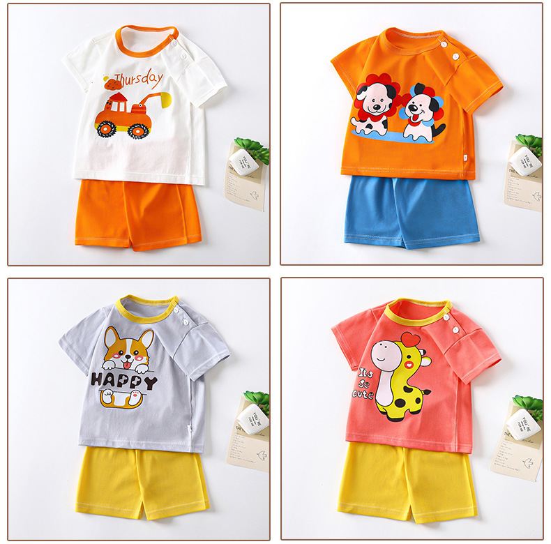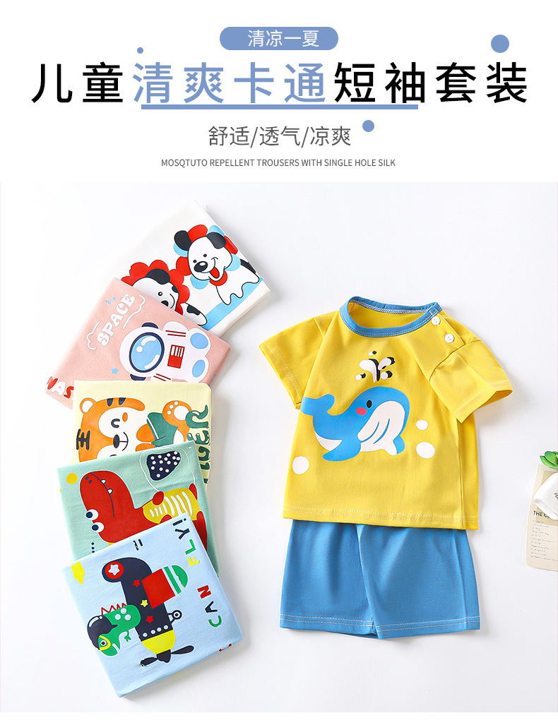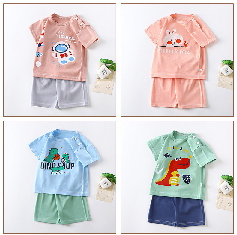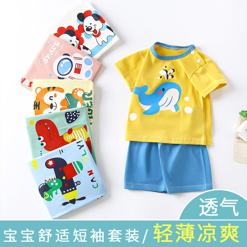 어린이 반팔 세트 면 여자 여름복 소년 티셔츠 아기 옷 한국식 아동복 반바지 스포츠