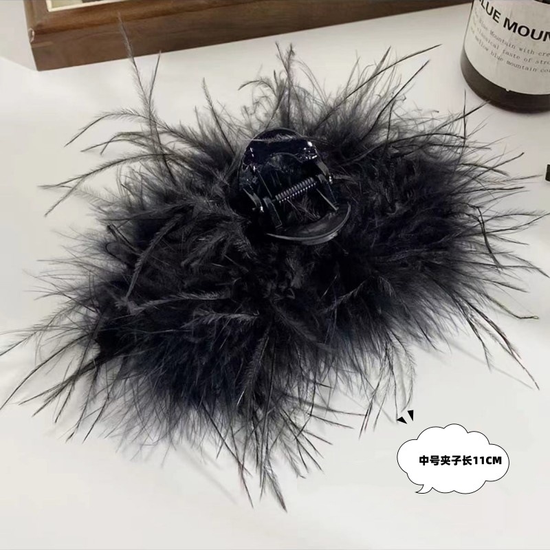 새로운 핑크색 깃털 큰 집게핀, 가을 겨울 신상, 매우 아름다운 타조털 머리핀, 뒷머리 포인트 헤어 스타일링용 샤크클립