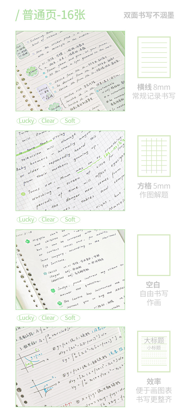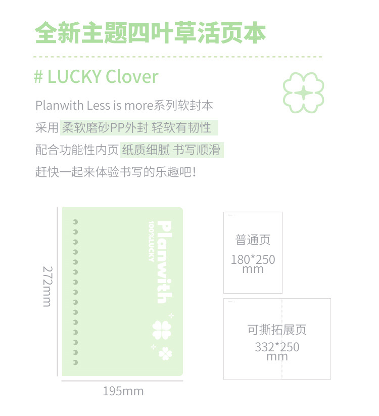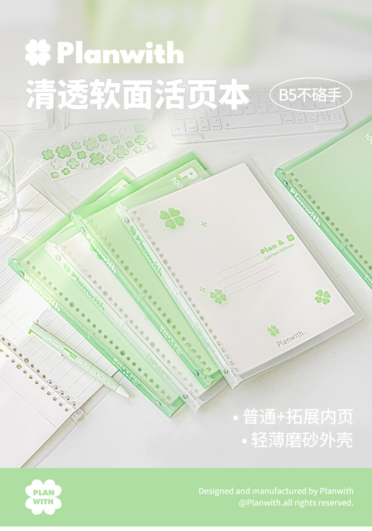 Planwith Friends 계획 네 잎 클로버 부드러운 얼굴의 느슨한 잎 노트북 학생들은 내부 페이지 B5 노트북을 손으로 혼합하지 않습니다.스토어 가기