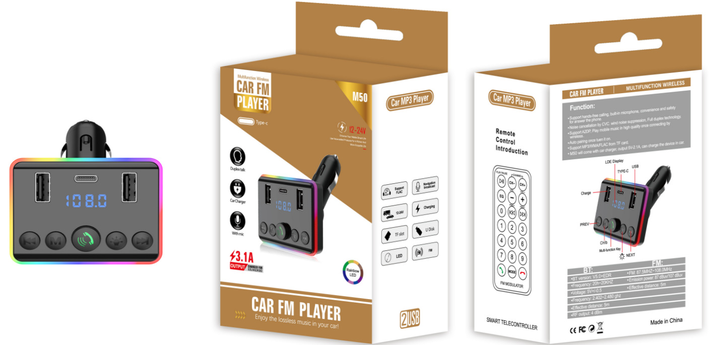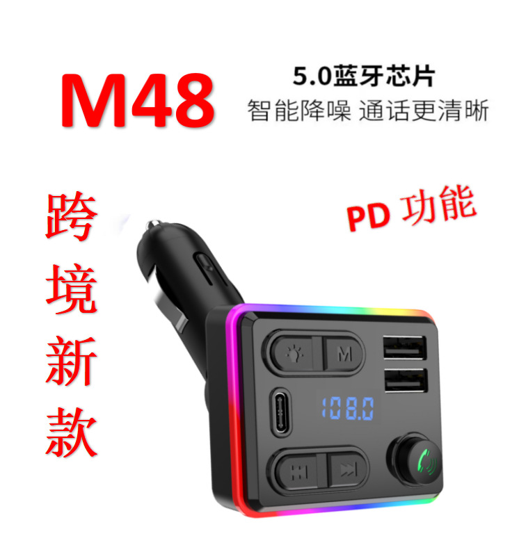 M51 자동차 mp3 블루투스 플레이어 M48 원격 제어 PD 빠른 충전 M49 핸즈프리 전화 FM 송신기 M50
