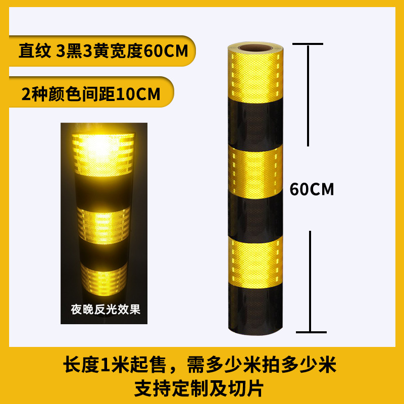 • 60.3cm 노란색 3개 검정색 직선(고강도 반사) 1m