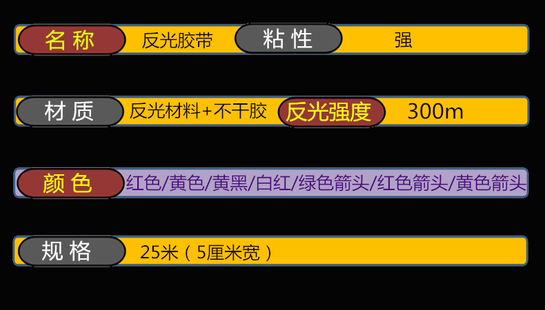 • 폭 60CM, 고강도 노란색 및 검정색 능직(고강도 반사)) 5m