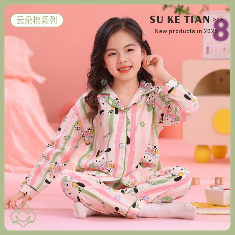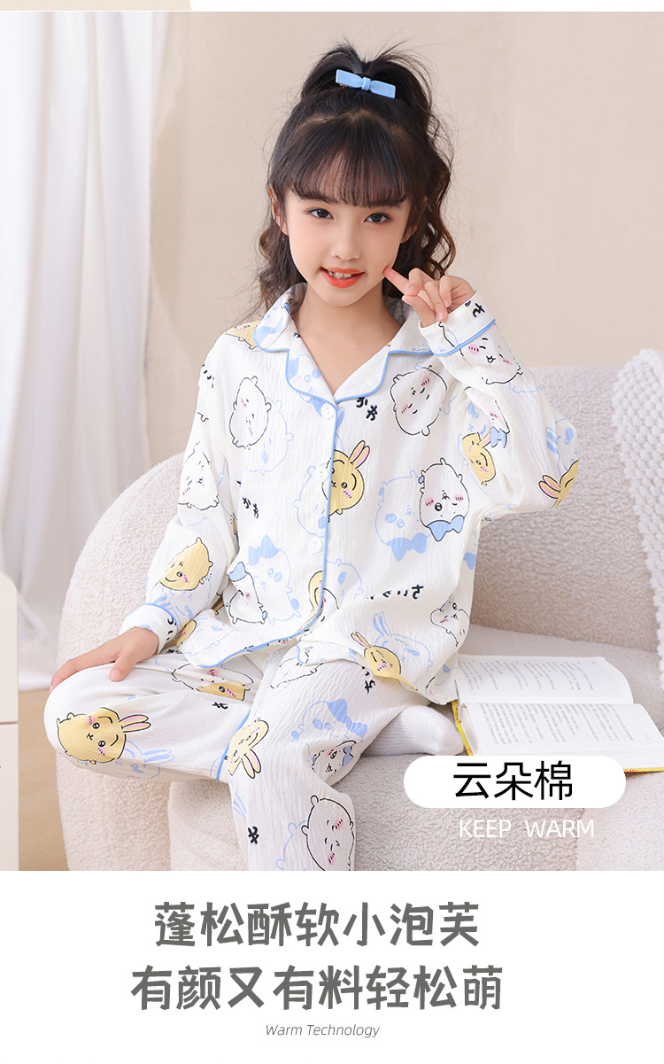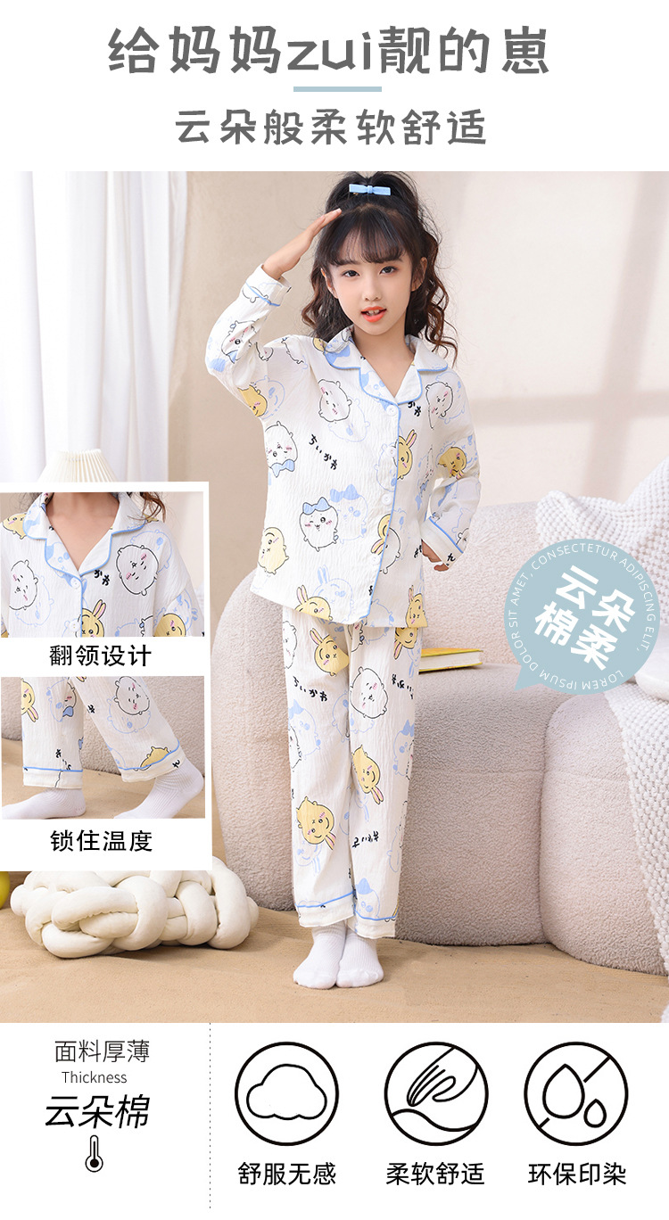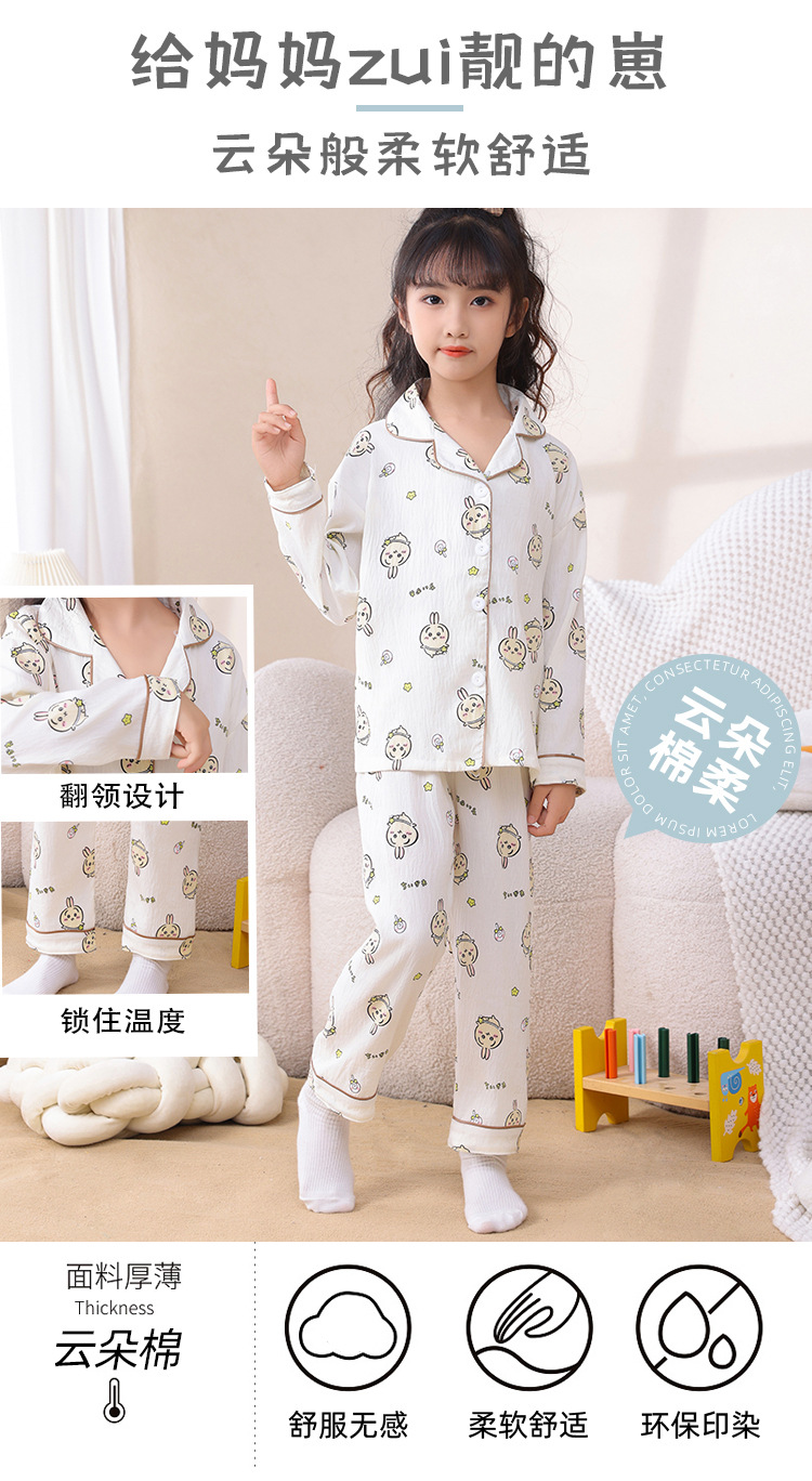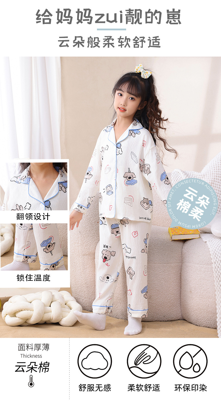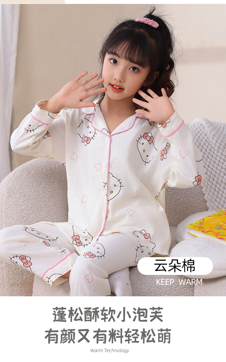 봄과 가을 어린이 잠옷 소녀의 구름 면화 홈 옷 옷깃 카디건 얇은 세트 만화 소녀 중 큰 아이들