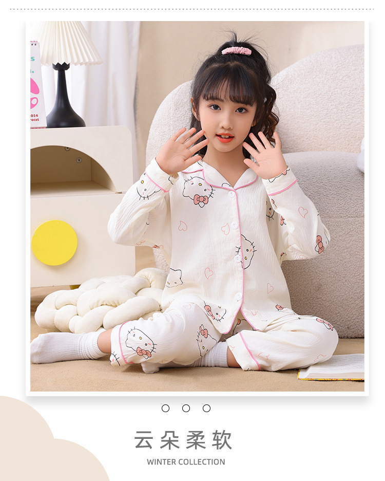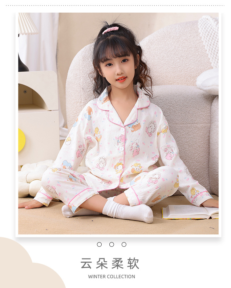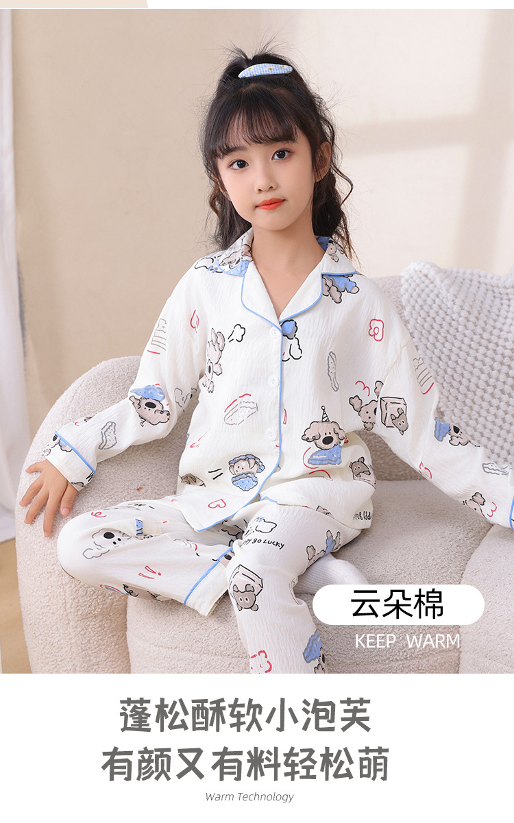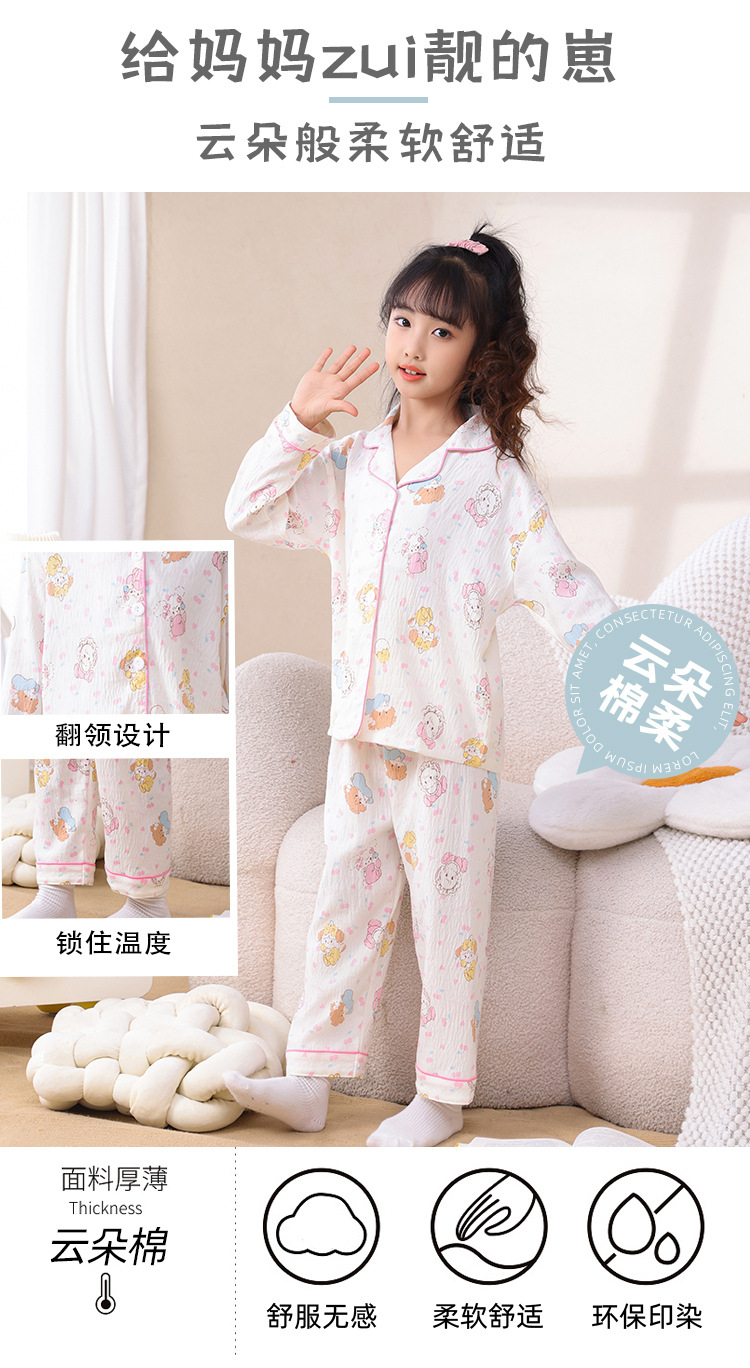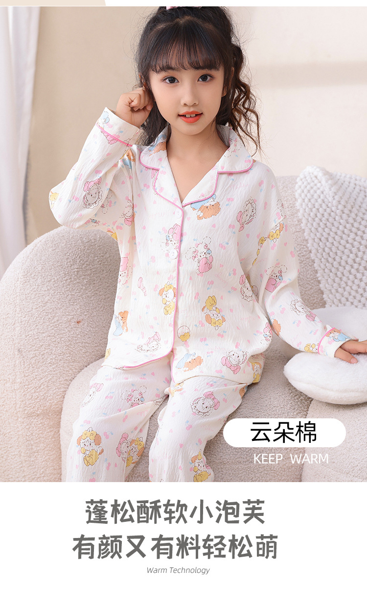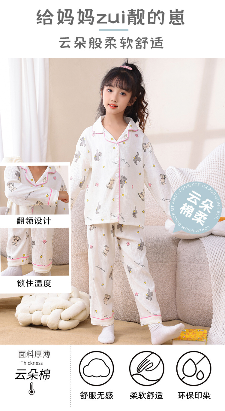 봄과 가을 어린이 잠옷 소녀의 구름 면화 홈 옷 옷깃 카디건 얇은 세트 만화 소녀 중 큰 아이들스토어 가기