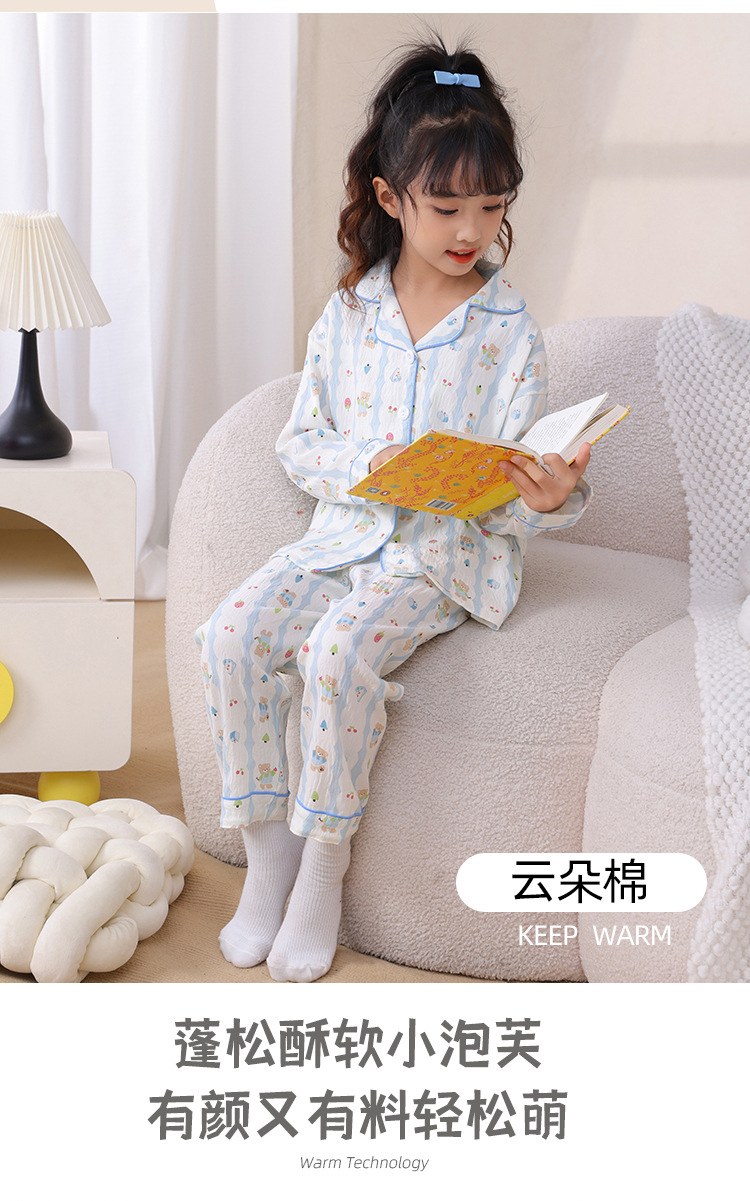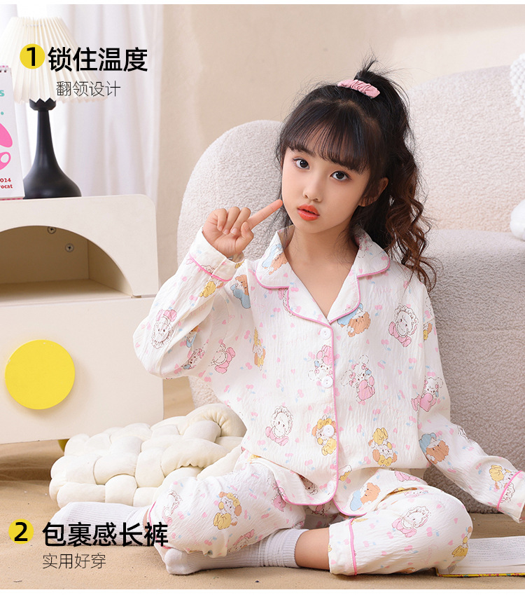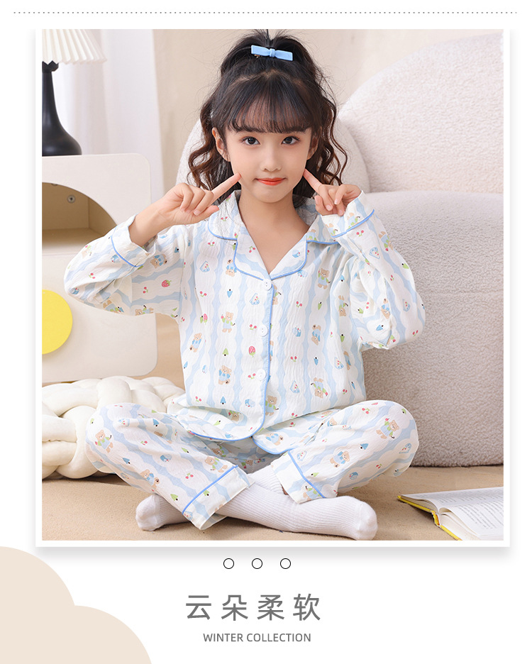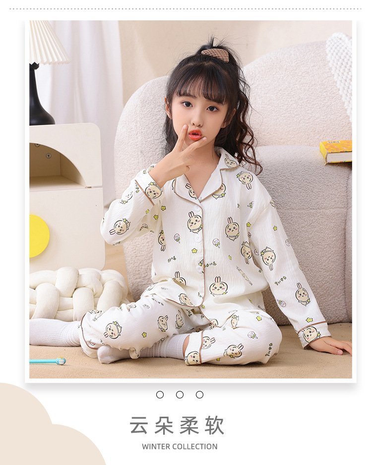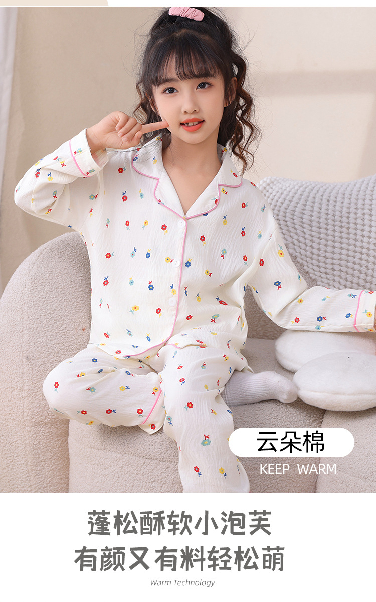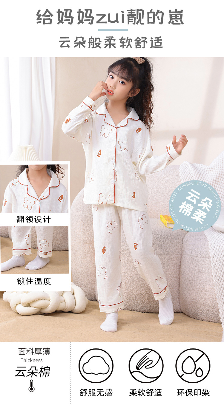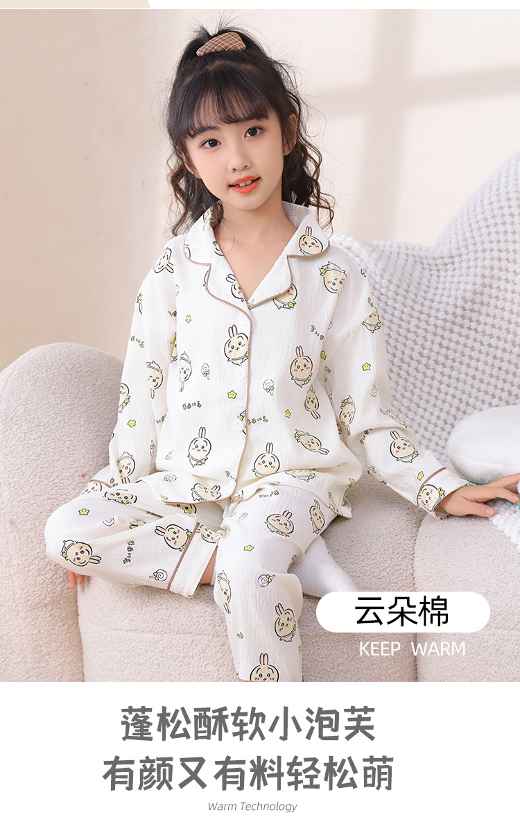 봄과 가을 어린이 잠옷 소녀의 구름 면화 홈 옷 옷깃 카디건 얇은 세트 만화 소녀 중 큰 아이들스토어 가기