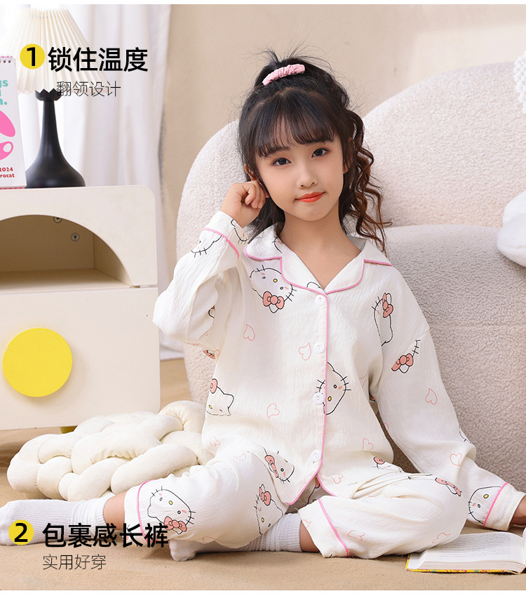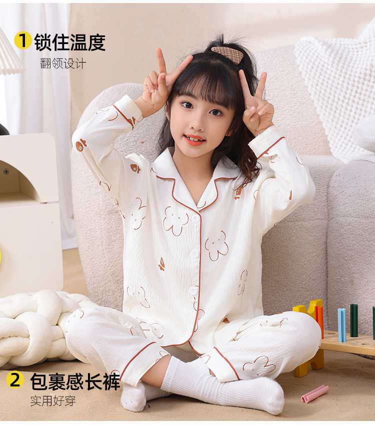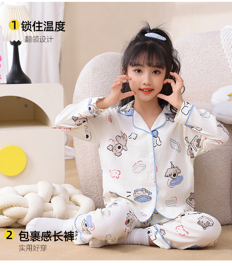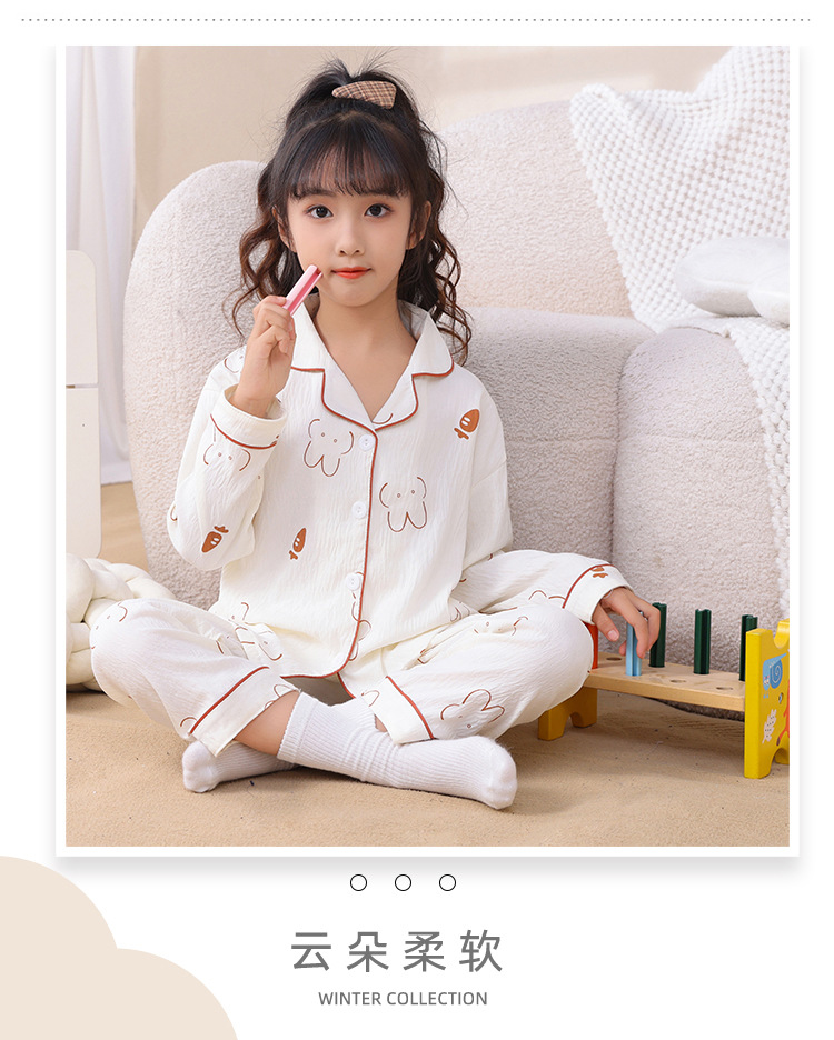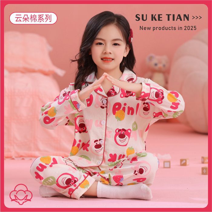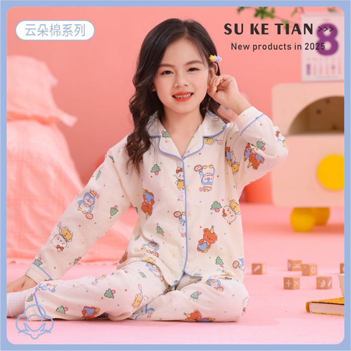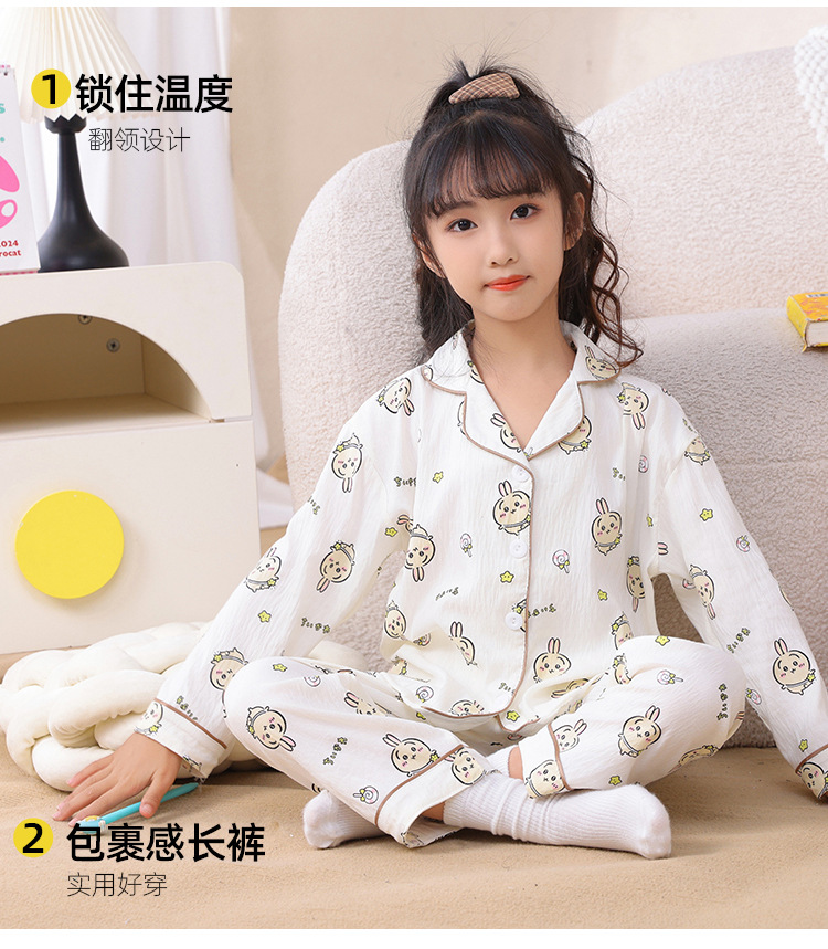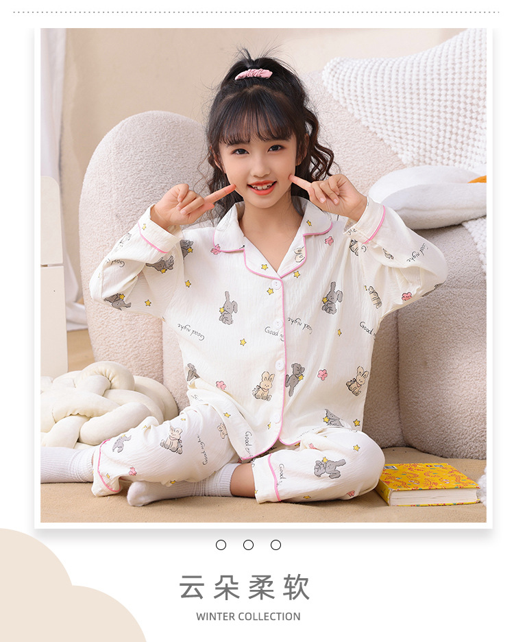 봄과 가을 어린이 잠옷 소녀의 구름 면화 홈 옷 옷깃 카디건 얇은 세트 만화 소녀 중 큰 아이들스토어 가기