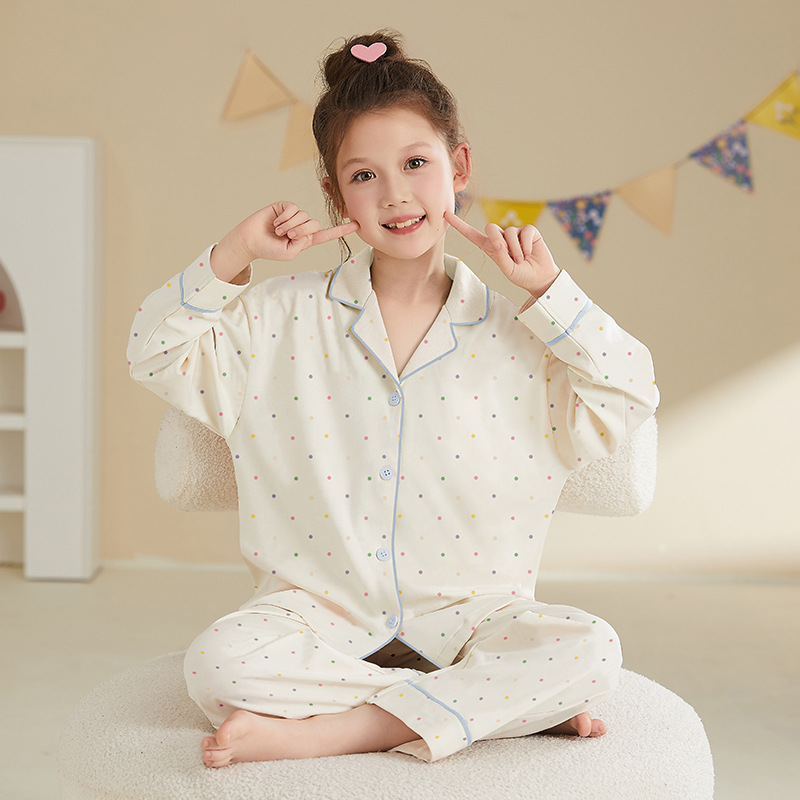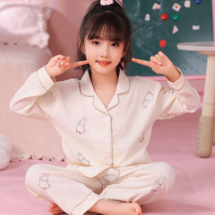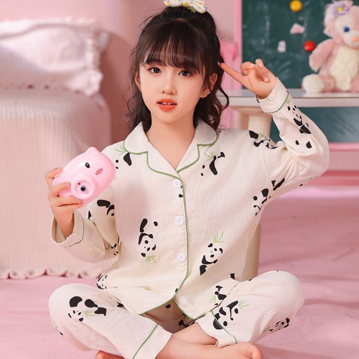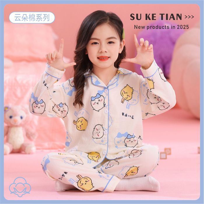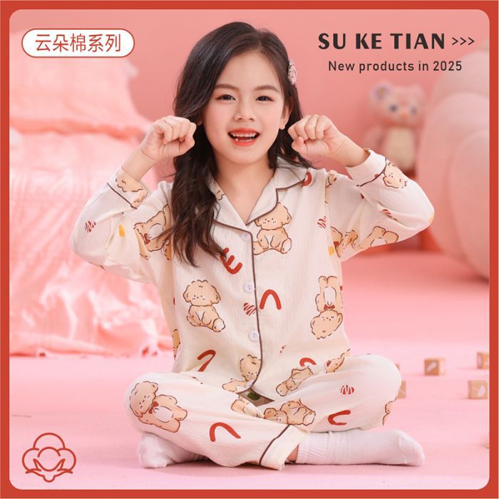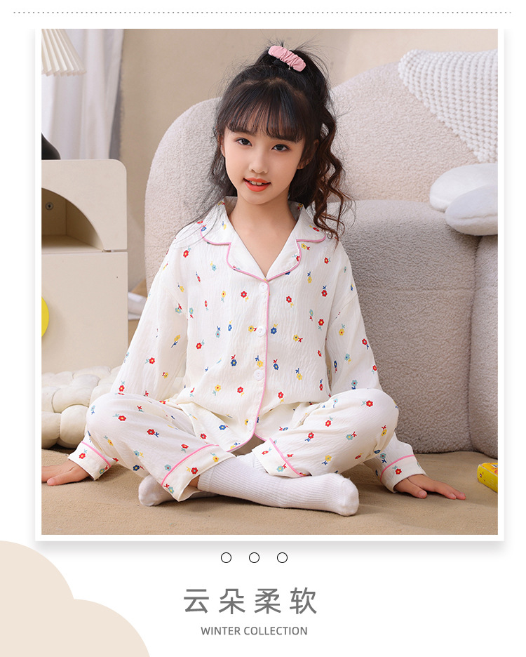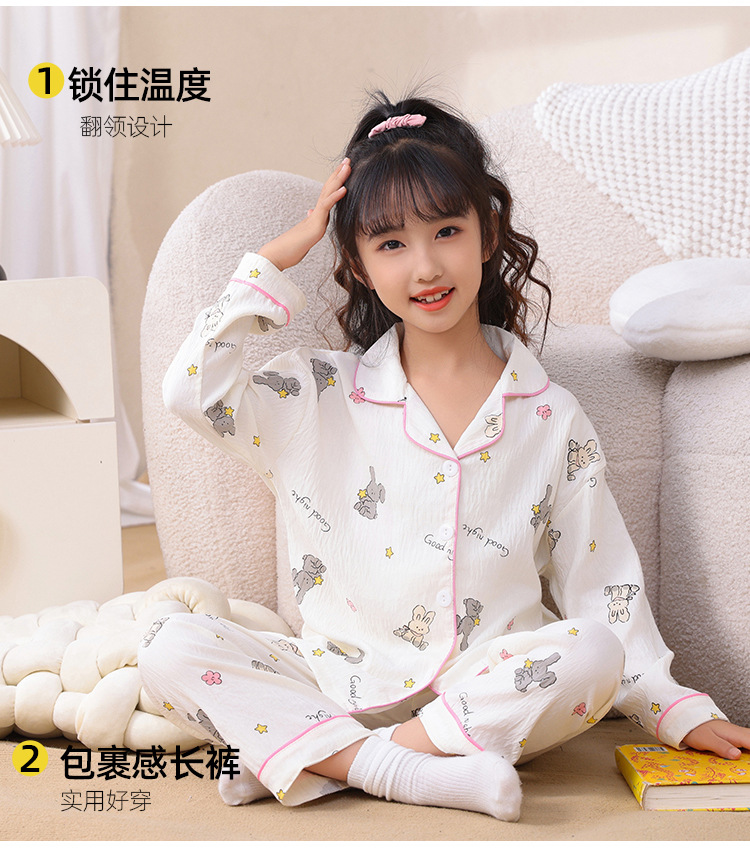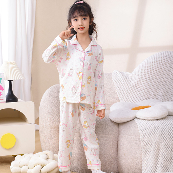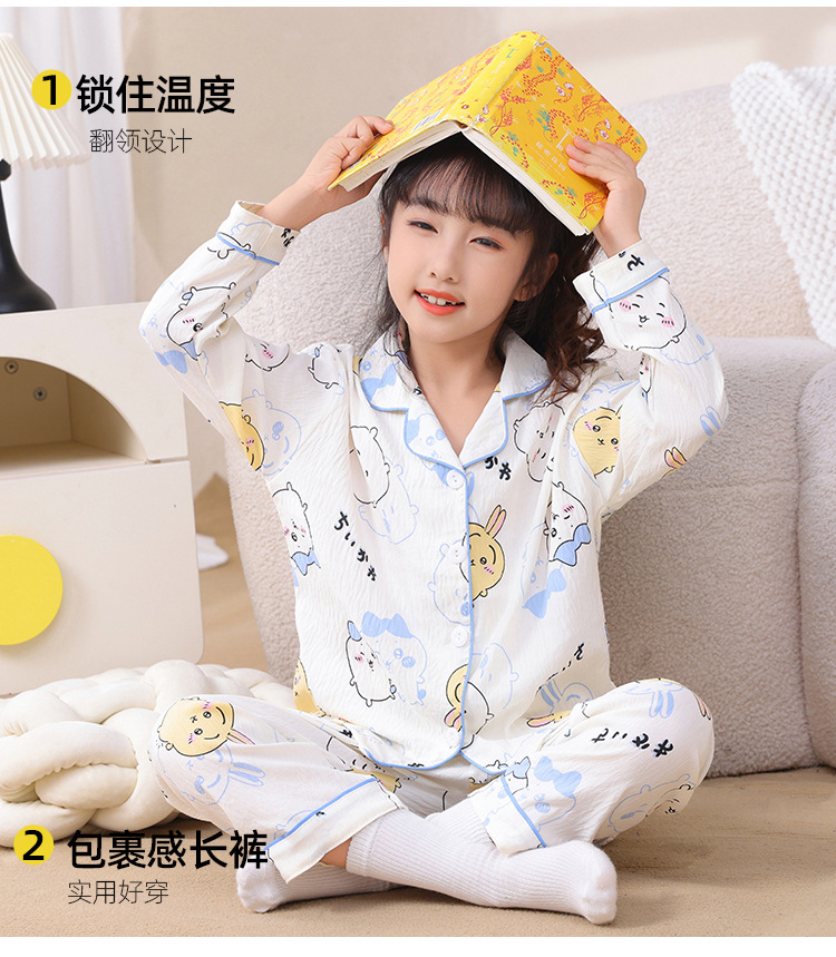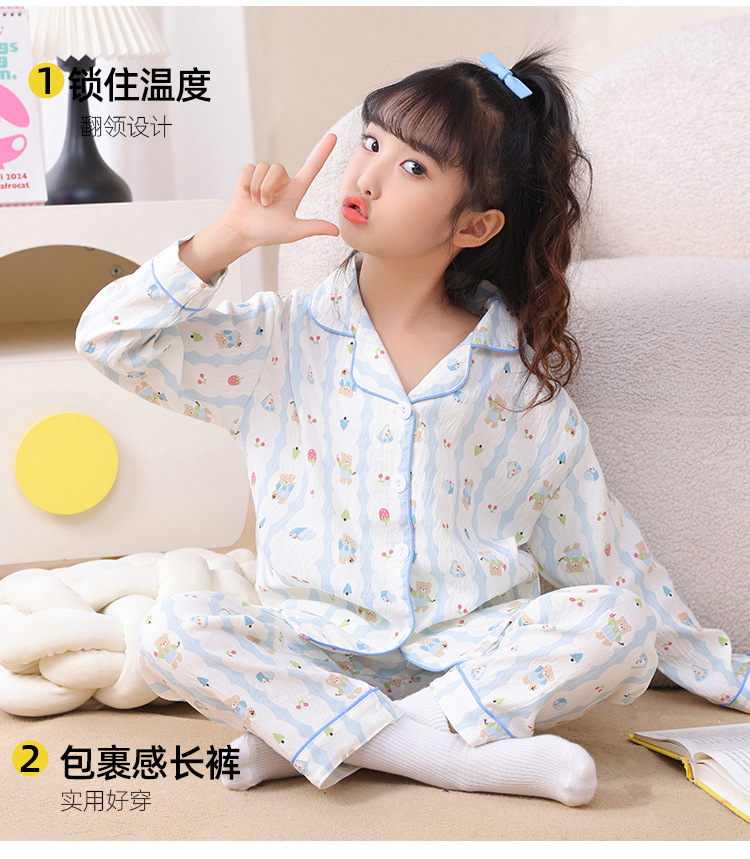 봄과 가을 어린이 잠옷 소녀의 구름 면화 홈 옷 옷깃 카디건 얇은 세트 만화 소녀 중 큰 아이들스토어 가기
