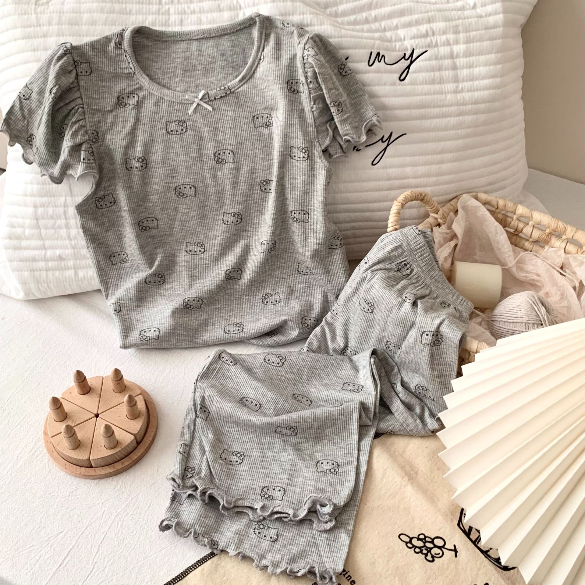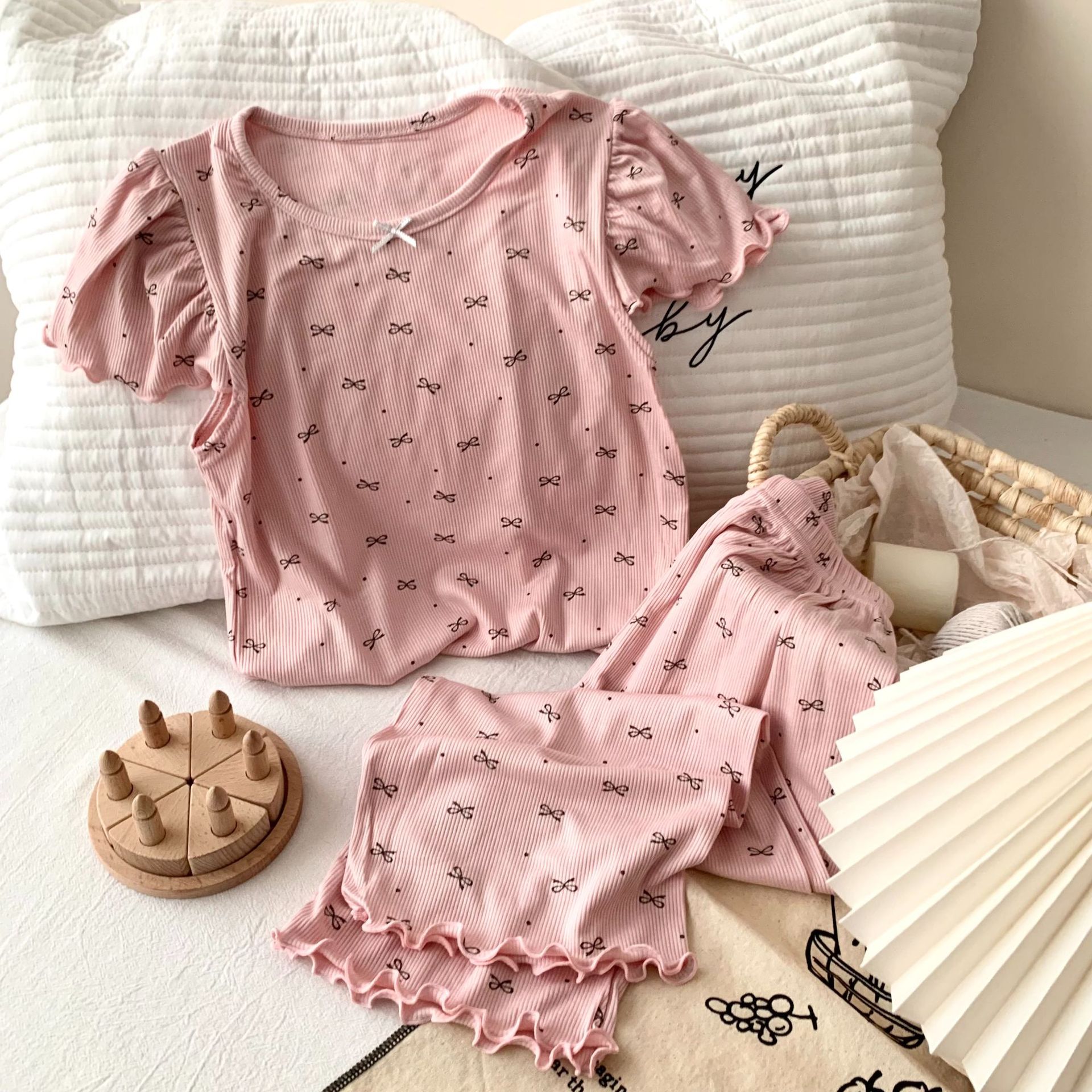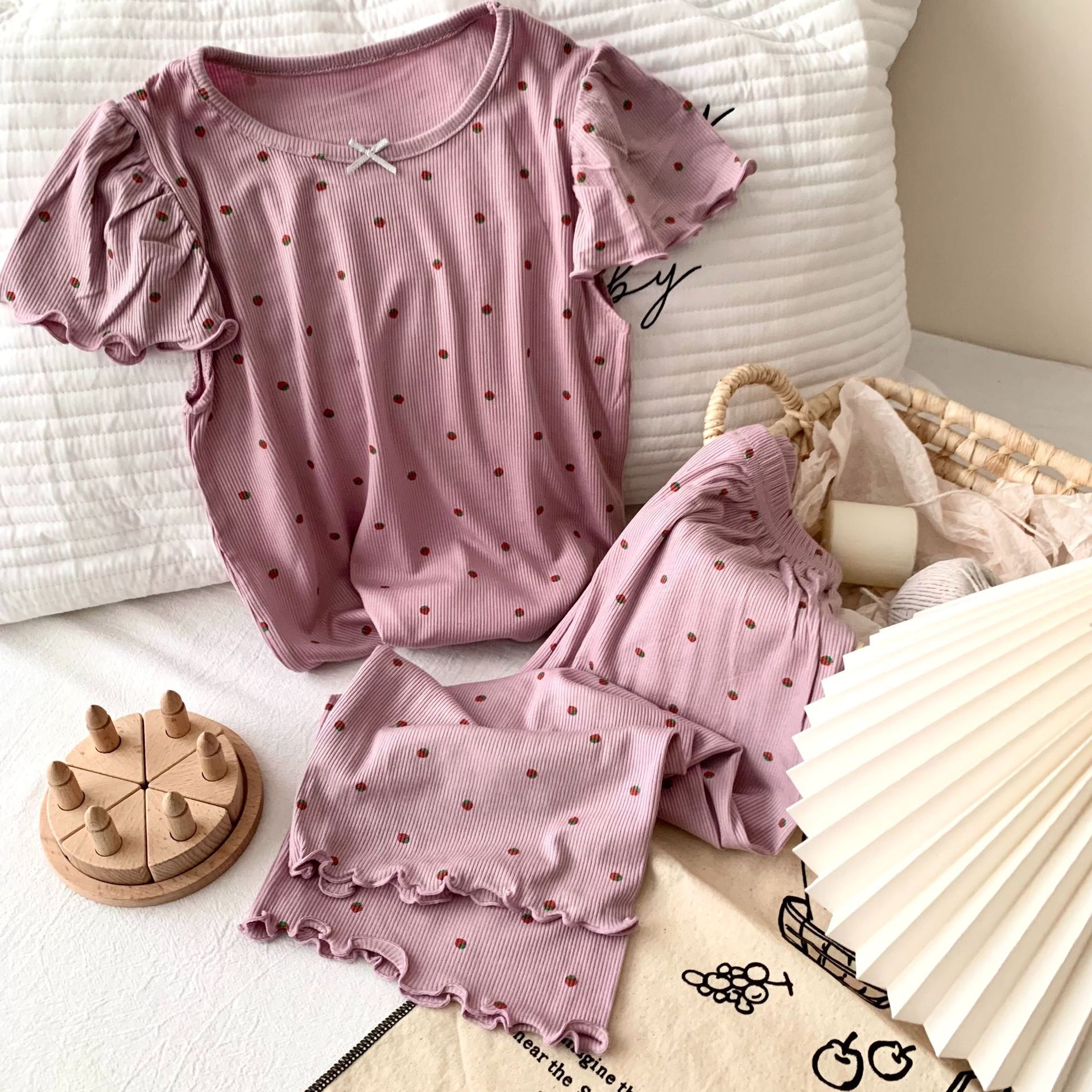 어린이 집 옷 봄 여름 새로운 작은 인상 모달 클래스 A 니트 벗은 한국 여자 잠옷 세트