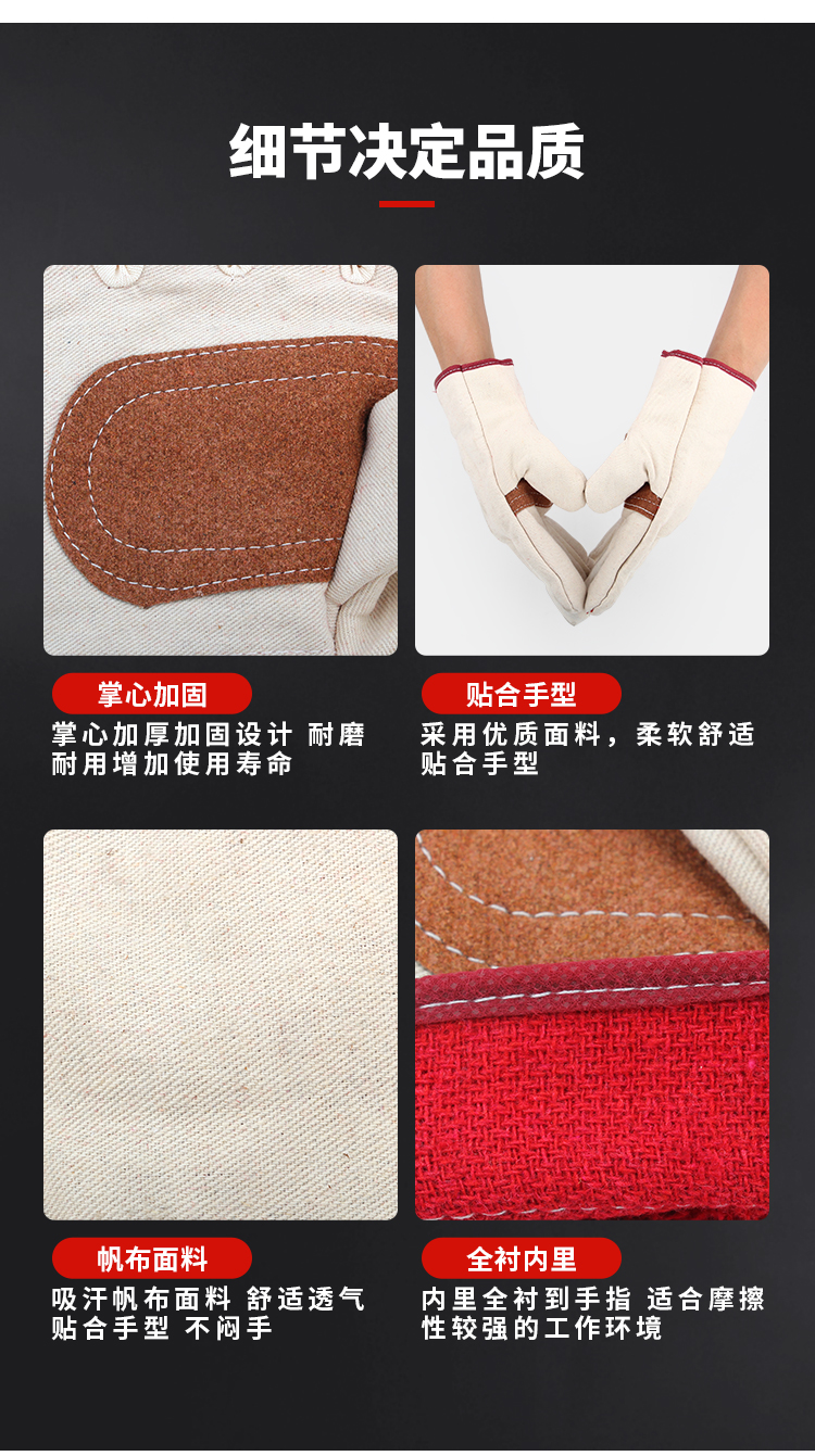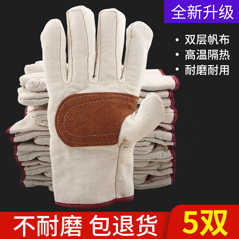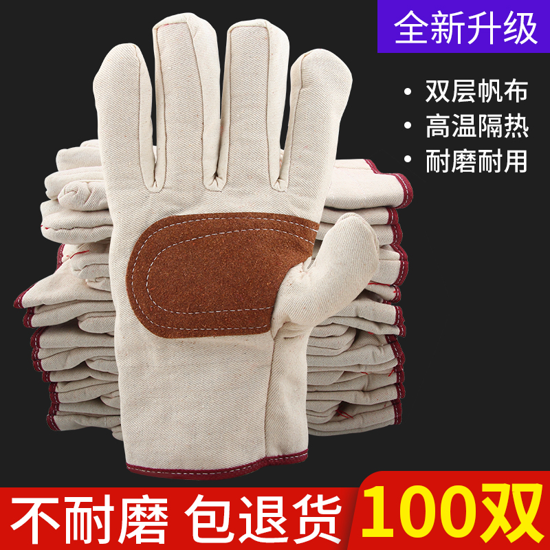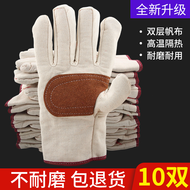 캔버스 장갑 용접공, 선반 작업자, 노동 보호, 두꺼운, 풀 라이닝, 안티 스케일, 팜 하트 보강, 현장 작업자를위한 단열 보호
