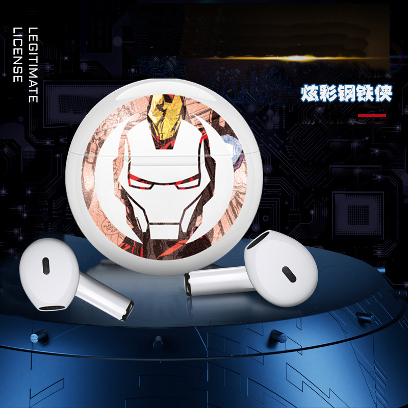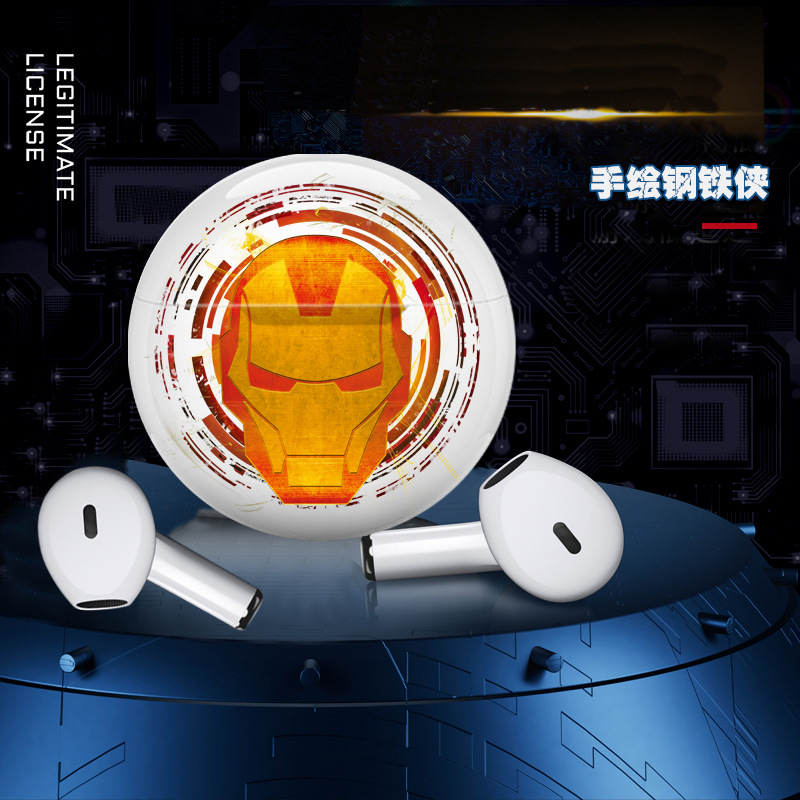 마블 아이언 맨 미국 팀 무선 블루투스 헤드셋 반 귀 게임 스포츠 바이나럴 헤드셋 장수