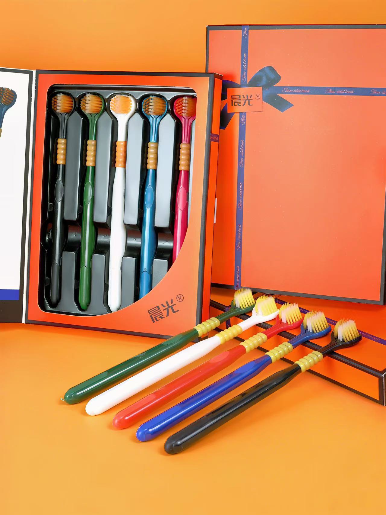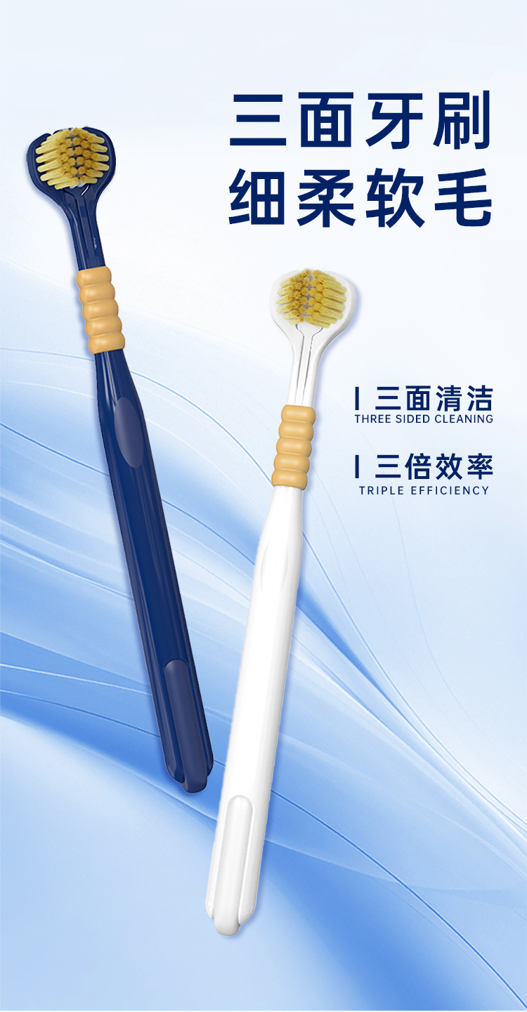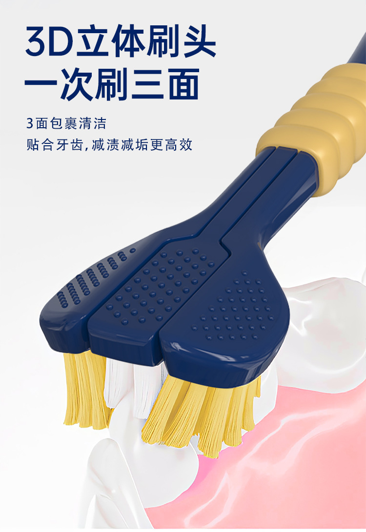 아마존의 새로운 3D 3 면 어린이 부드러운 칫솔 3 면 3 차원 이중 머리 접목 유아용 칫솔 재고