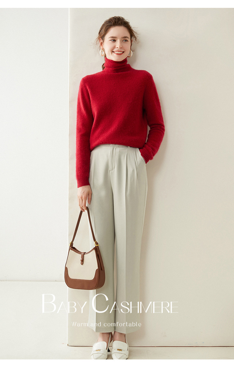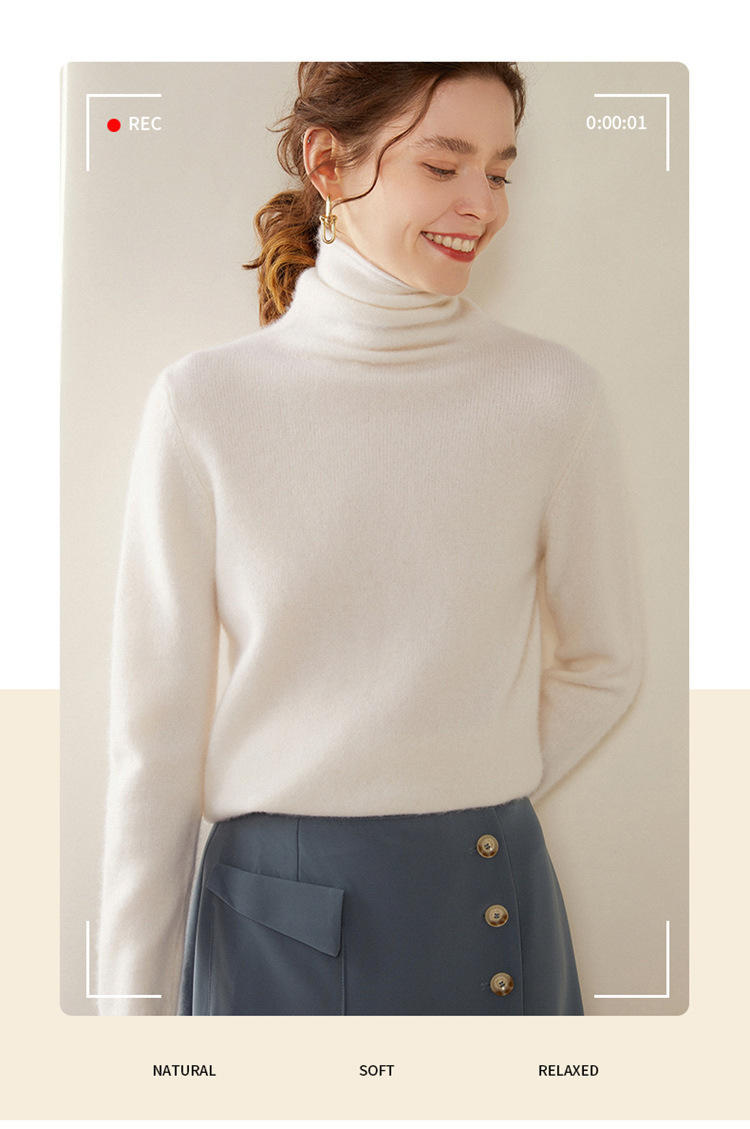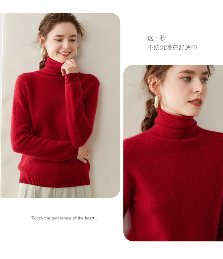 포장 된 칼라 캐시미어 니트 베이스 레이어 셔츠 여성용 터틀넥 스웨터 부드러운 피부 친화적 인 세련된 긴 소매 내부 캐시미어 스웨터