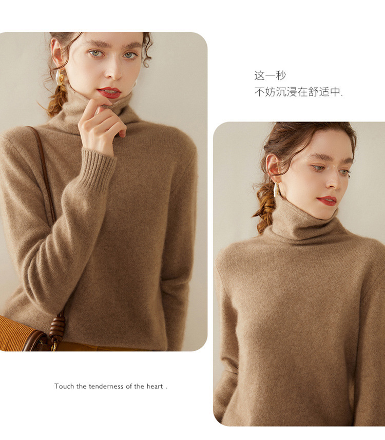 포장 된 칼라 캐시미어 니트 베이스 레이어 셔츠 여성용 터틀넥 스웨터 부드러운 피부 친화적 인 세련된 긴 소매 내부 캐시미어 스웨터스토어 가기
