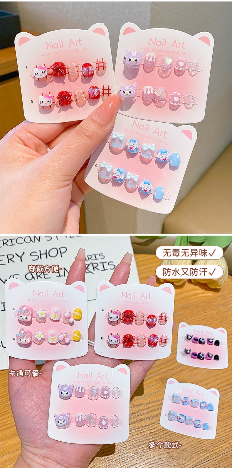 아동복 갑옷 3 차원 산리오 네일 스티커 소녀 아기 착용 갑옷 접착제 무독성 안전 네일 아트 세트