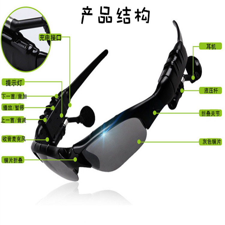 时尚蓝牙眼镜, 集成数字无线和太阳镜技术融合而成 蓝牙版本5.1 :支持蓝牙,通话,音乐