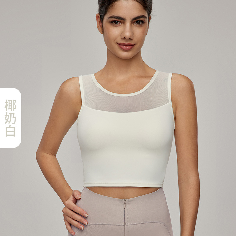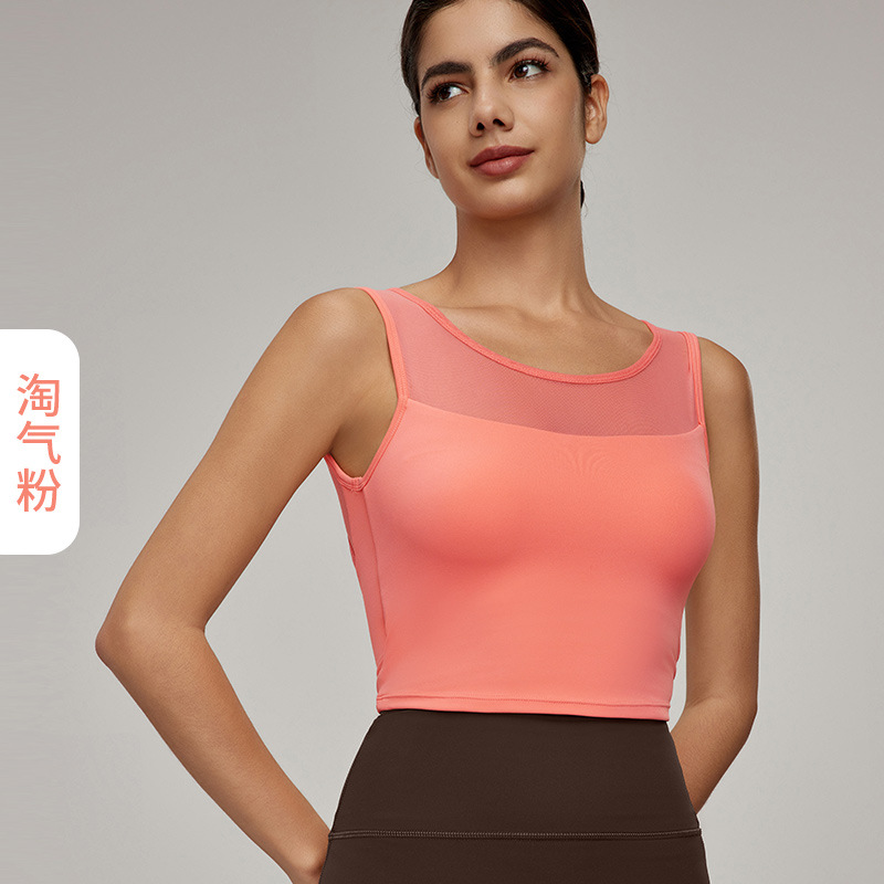 중간 강도 스포츠 속옷 여성의 섹시한 메쉬 아름다운 백 요가 조끼 원피스 노런 컵 아우터 피트니스 브라스토어 가기