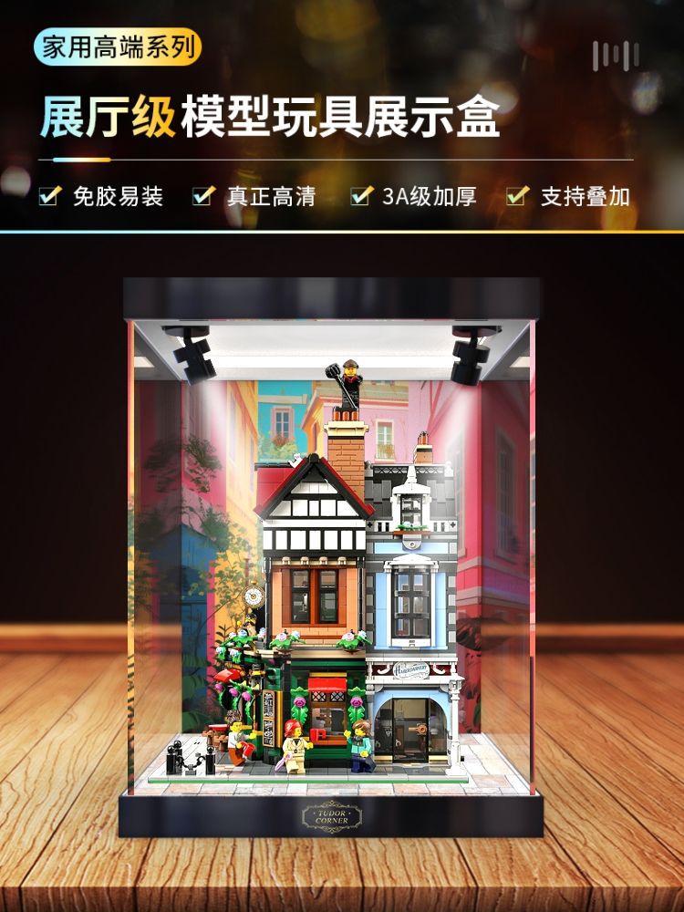 레고 10350 레트로 영국 스트리트 코너 ICONS 시리즈 스트리트 뷰 모델 아크릴 스토리지 박스 용 먼지 커버스토어 가기