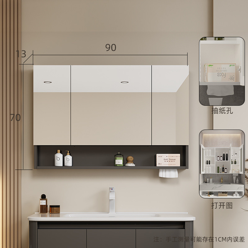 • 일반 모델(조명 및 김서림 방지 없음) [신품] - 회색 90CM 반밀폐형 거울 캐비닛