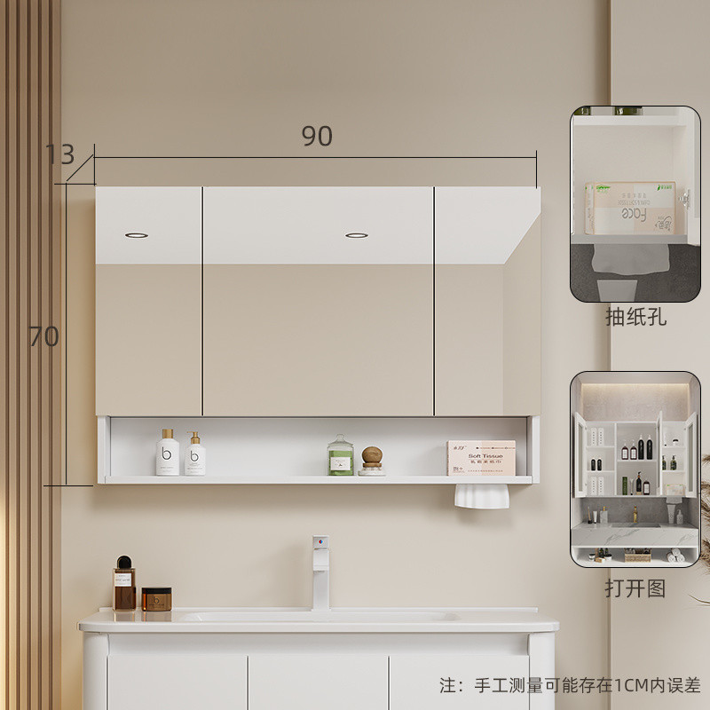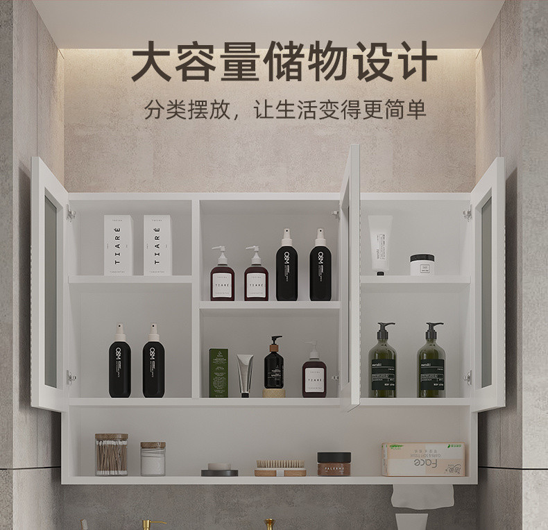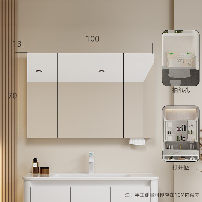 • 일반 모델(조명 및 김서림 방지 없음) [신품] - 흰색 100CM 반밀폐형 개방형 거울 캐비닛 [불]
