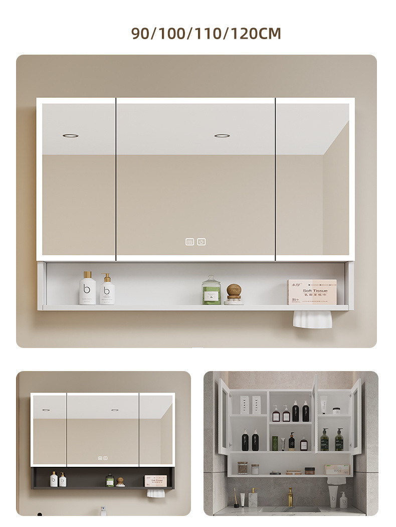 • 스마트 모델(조명 및 김서림 방지 포함) [신규] 인기 모델 - 흰색 120CM 반밀폐형 오픈 그리드 거울 캐비닛