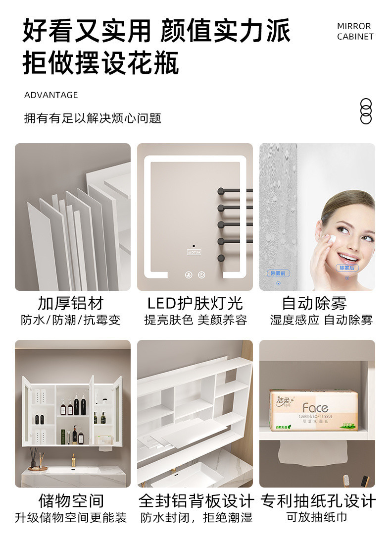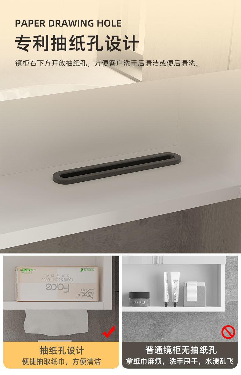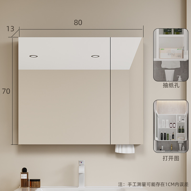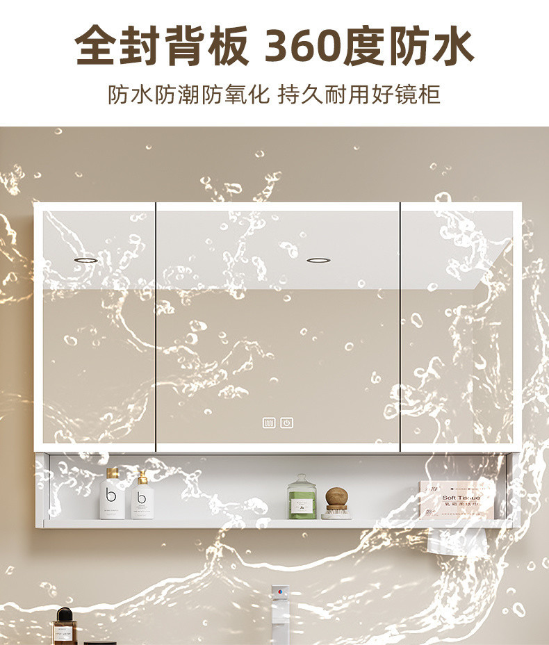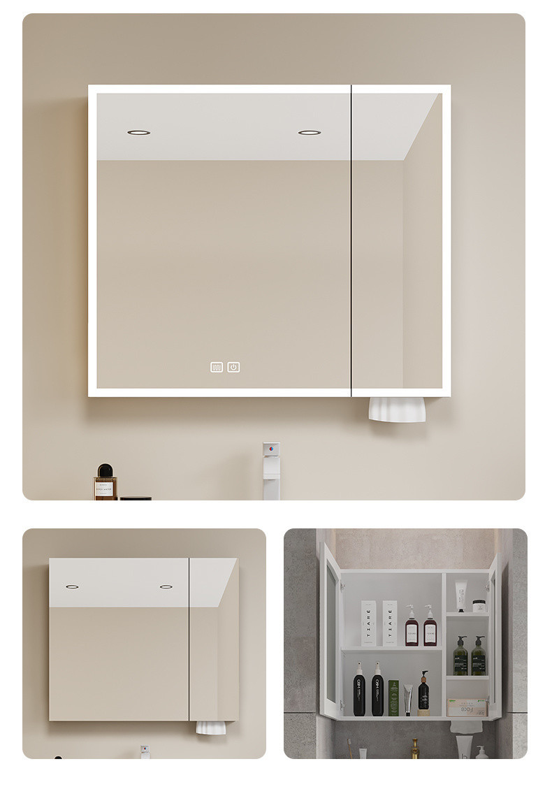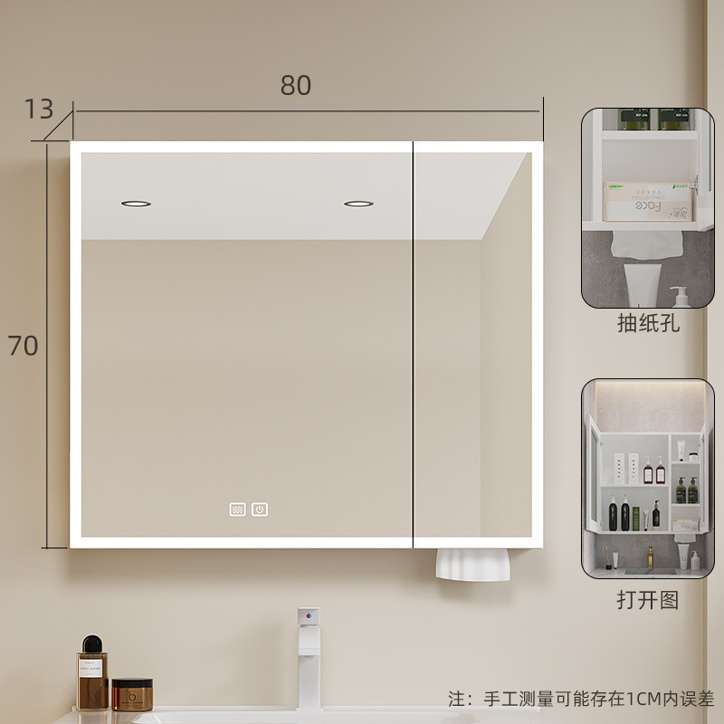 • 스마트 모델(조명 및 김서림 방지 포함) [신규] 인기 모델 - 흰색 80CM 반밀폐형 오픈 그리드 거울 캐비닛