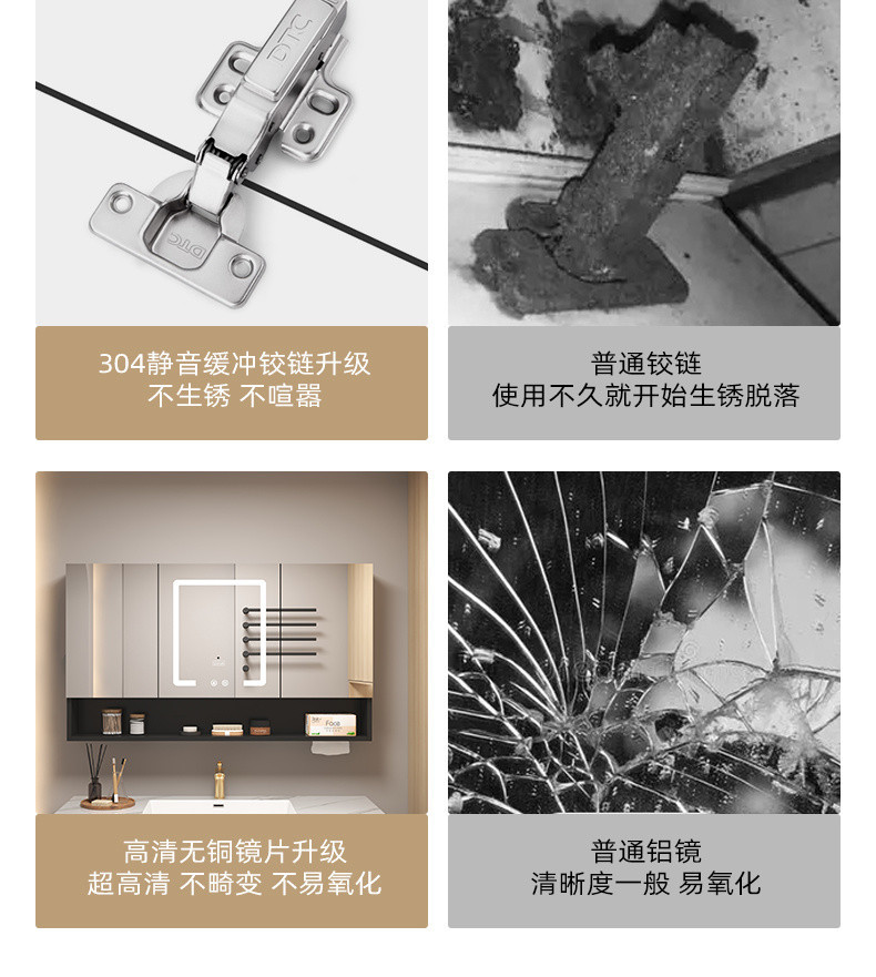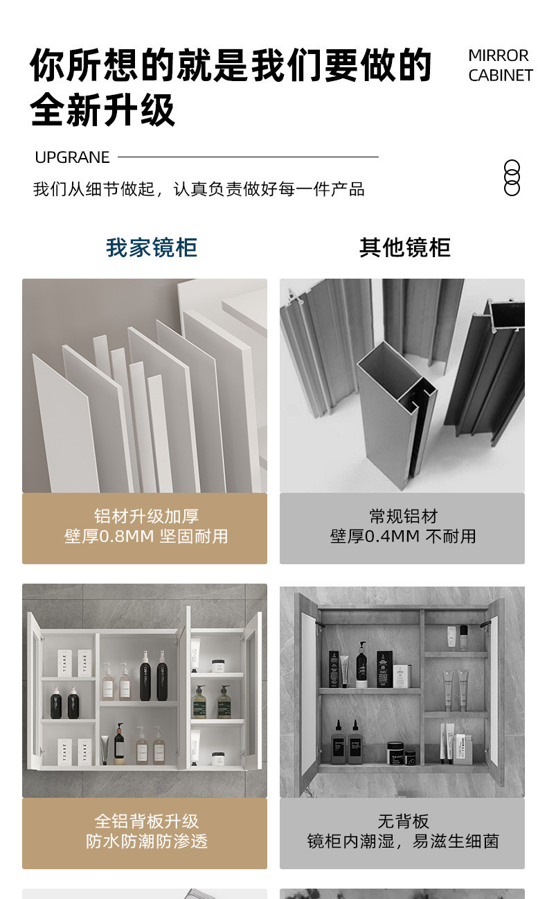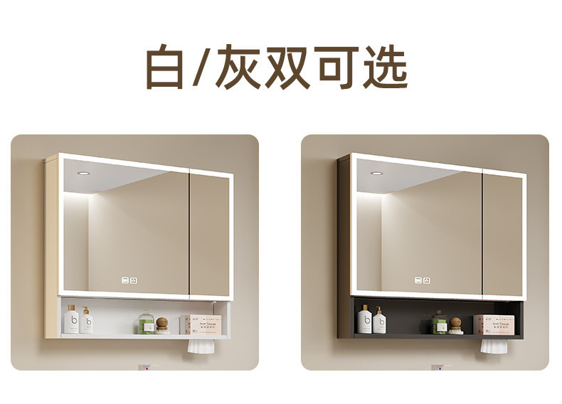 • 스마트 모델(조명 및 김서림 방지 포함) [신규] 인기 모델 - 회색 80CM 반밀폐형 오픈 그리드 거울 캐비닛