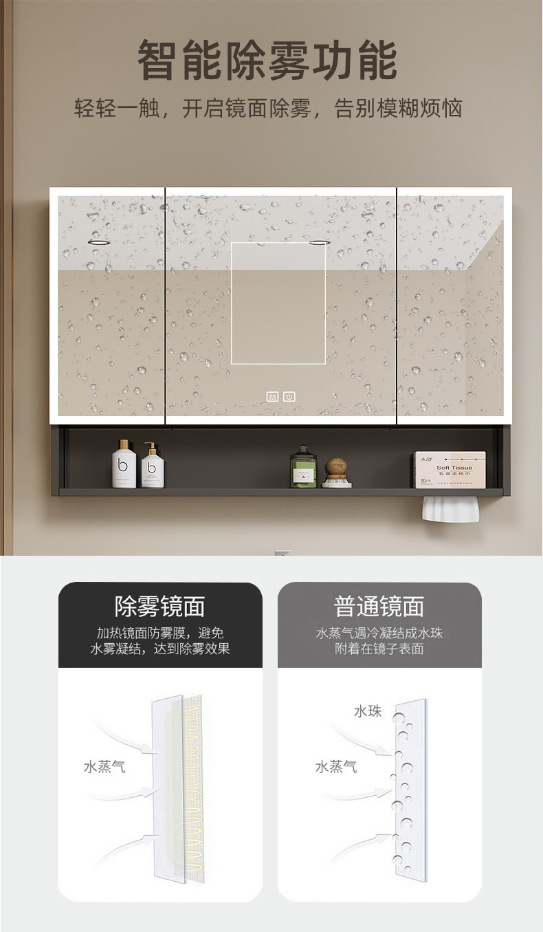 • 스마트 모델(조명 및 김서림 방지 포함) [신품] 인기 모델 - 회색 100CM 반밀폐형 오픈 그리드 거울 캐비닛 [불