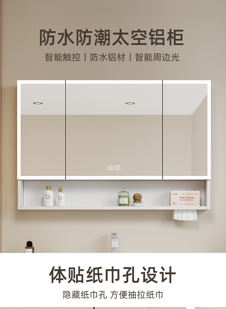 Yf3 공간 알루미늄 욕실 거울 캐비닛 별도의 화장실 벽걸이 형 지능형 보강 저장 통합 스토리지