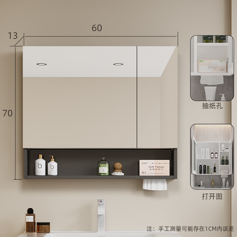 • 스마트 모델(조명 및 김서림 방지 기능) [신규] 인기 모델 - 회색 60CM 반밀폐형 오픈 그리드 거울 캐비닛