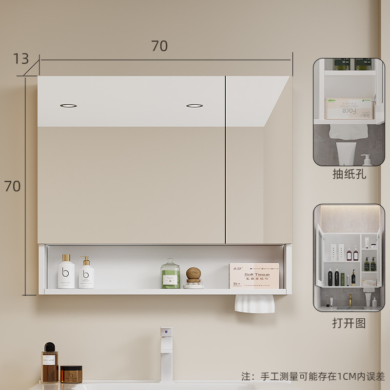 • 스마트 모델(조명 및 김서림 방지 포함) [신규] 인기 모델 - 흰색 70CM 반밀폐형 오픈 그리드 거울 캐비닛