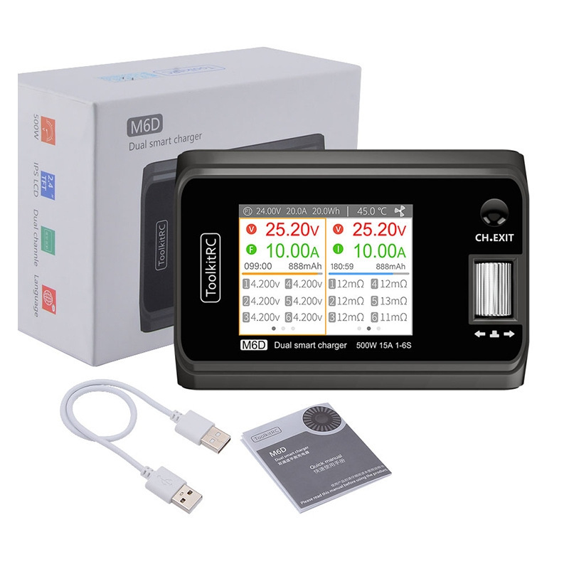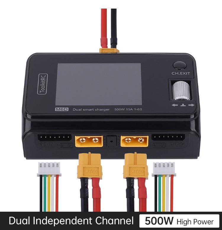 ToolkitRC M6D 모델 항공기 리튬 배터리 FPV 밸런스 충전기 2-6S 횡단 기계 500W 15A 듀얼 채널