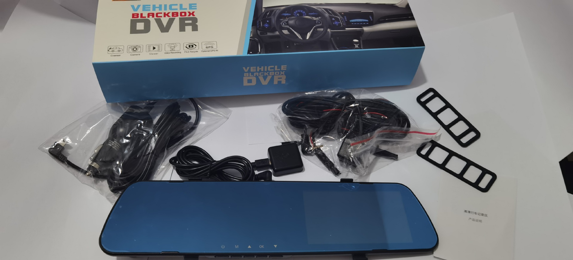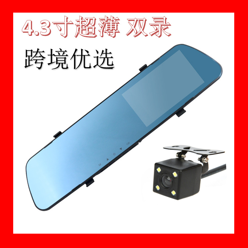 4.3寸行车记录仪1台·高清后镜头(双录)·车充电源线·仪器说明书·包装盒 4.3inch driving recorder 1 · HD rear lens (double recording) · Car charging source line · Instrument manual · Packing box |