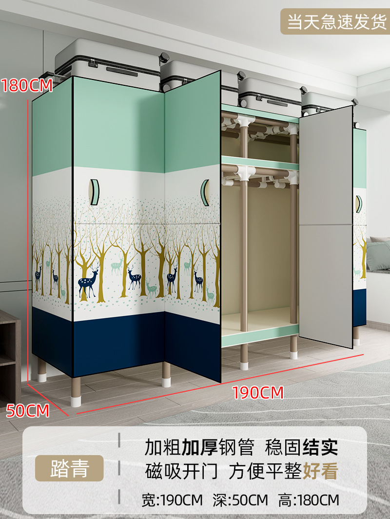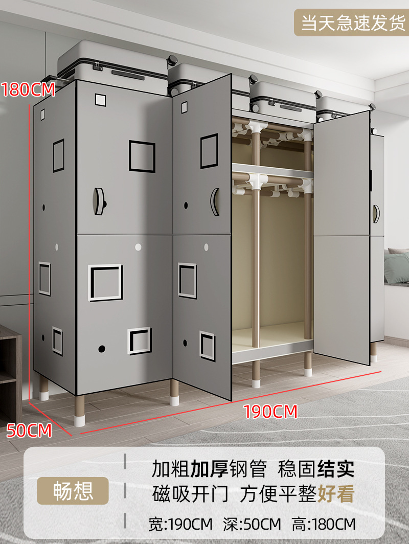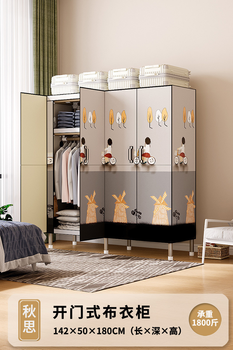 문이 열리는 천 옷장, 간단한 옷장, 강철 파이프, 두껍고 두꺼운, 전체 강철 직물, 임대실, 침실, 가정용 천 옷장, 옷장스토어 가기