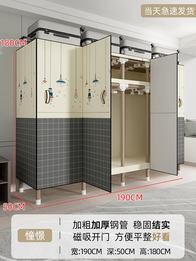 문이 열리는 천 옷장, 간단한 옷장, 강철 파이프, 두껍고 두꺼운, 전체 강철 직물, 임대실, 침실, 가정용 천 옷장, 옷장