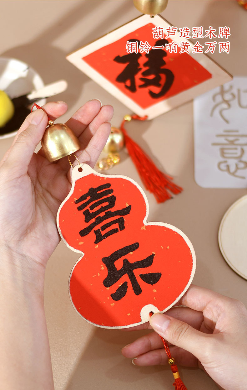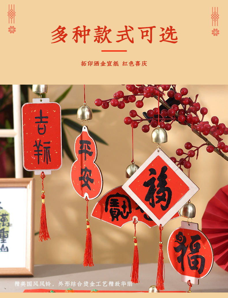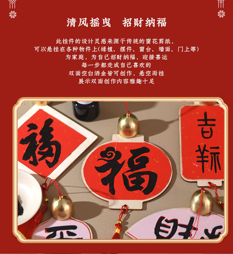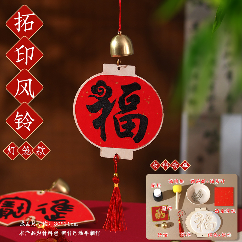 설날 풍경 인쇄 풍경종 DIY 재료 세트 나무 장식품 명절 축복 카드 손글씨 축복 글자 부모 자녀 공예 선물스토어 가기