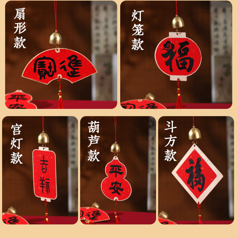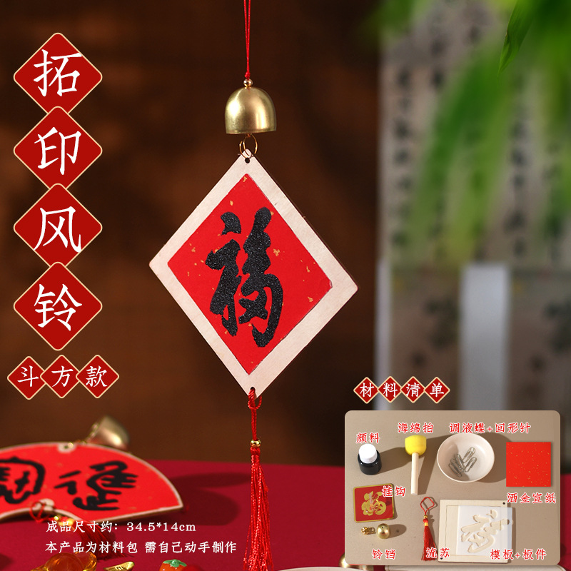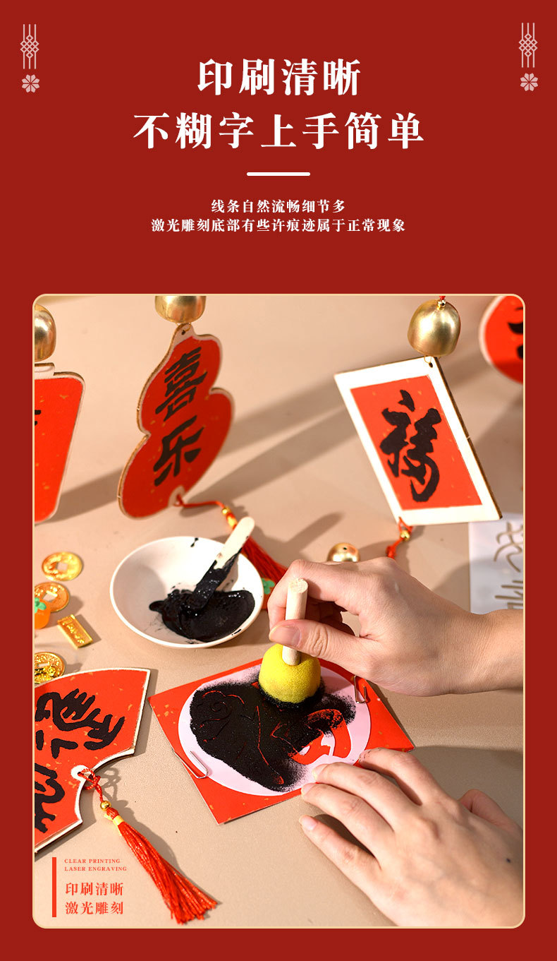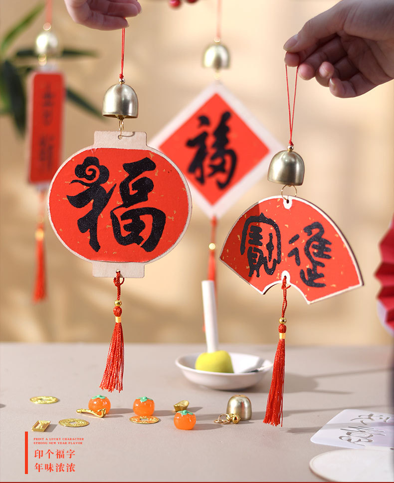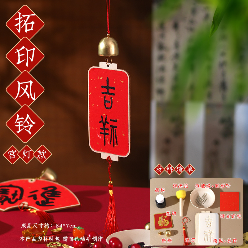 설날 풍경 인쇄 풍경종 DIY 재료 세트 나무 장식품 명절 축복 카드 손글씨 축복 글자 부모 자녀 공예 선물스토어 가기