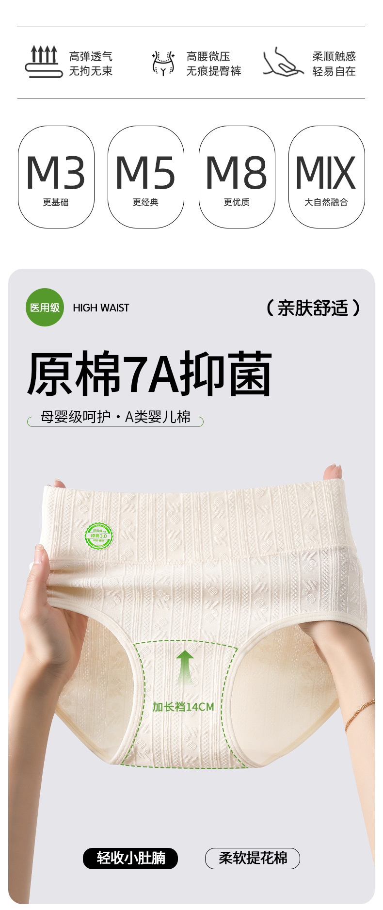 의료 등급 속옷 여성의 순수한면 항균 계층화 된 면화 7A 등급 높은 허리 복부 틴팅 여성 플러스 사이즈 브리프스토어 가기