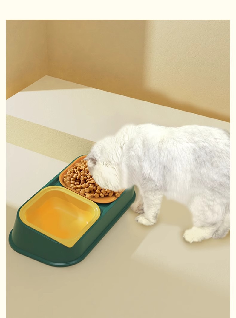 파이는 고양이 그릇 더블 그릇 스테인레스 스틸 고양이 그릇 먹고 마시는 그릇 개 그릇 개 그릇 틸트 목 보호 애완 동물 밥 그릇
