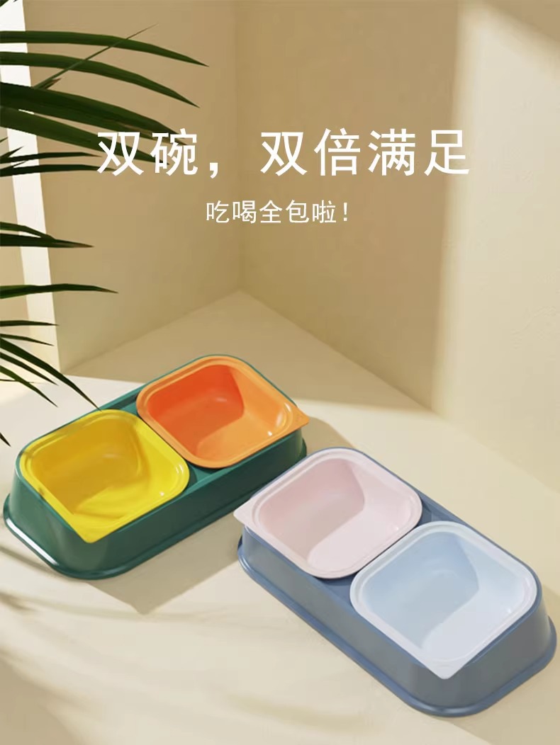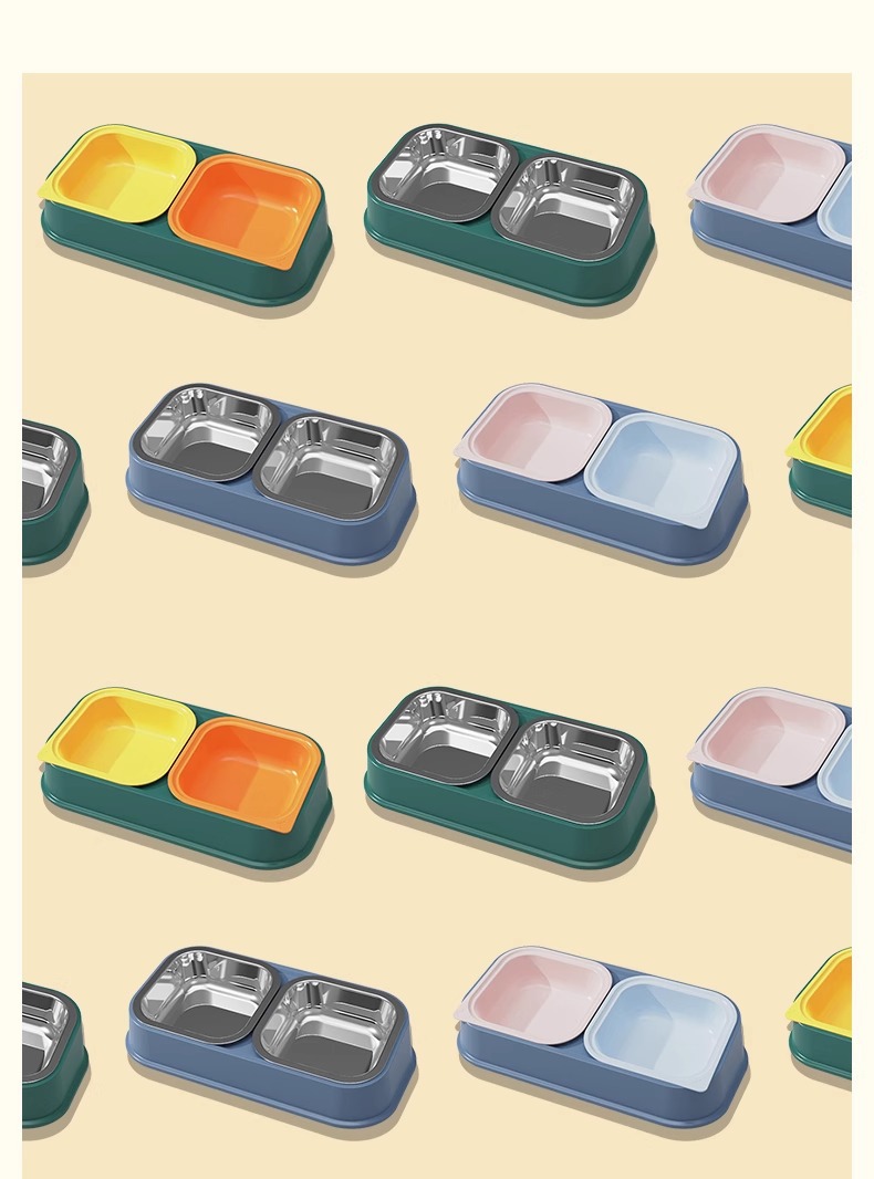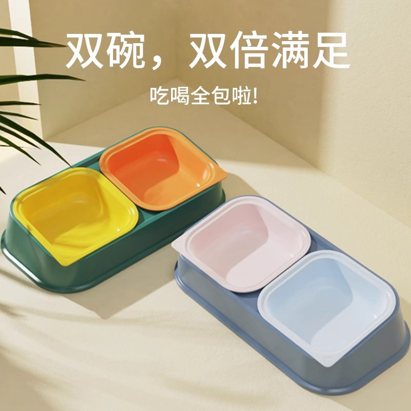파이는 고양이 그릇 더블 그릇 스테인레스 스틸 고양이 그릇 먹고 마시는 그릇 개 그릇 개 그릇 틸트 목 보호 애완 동물 밥 그릇스토어 가기