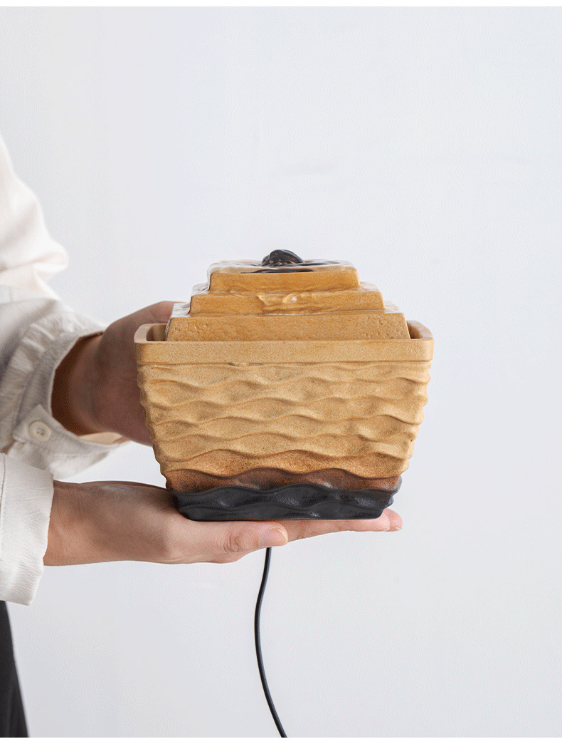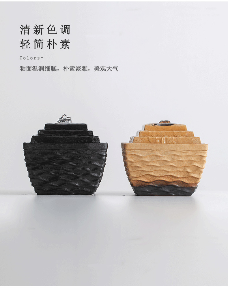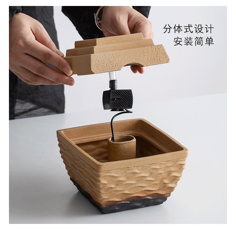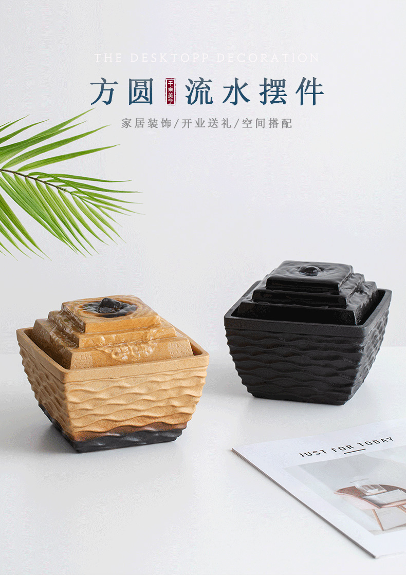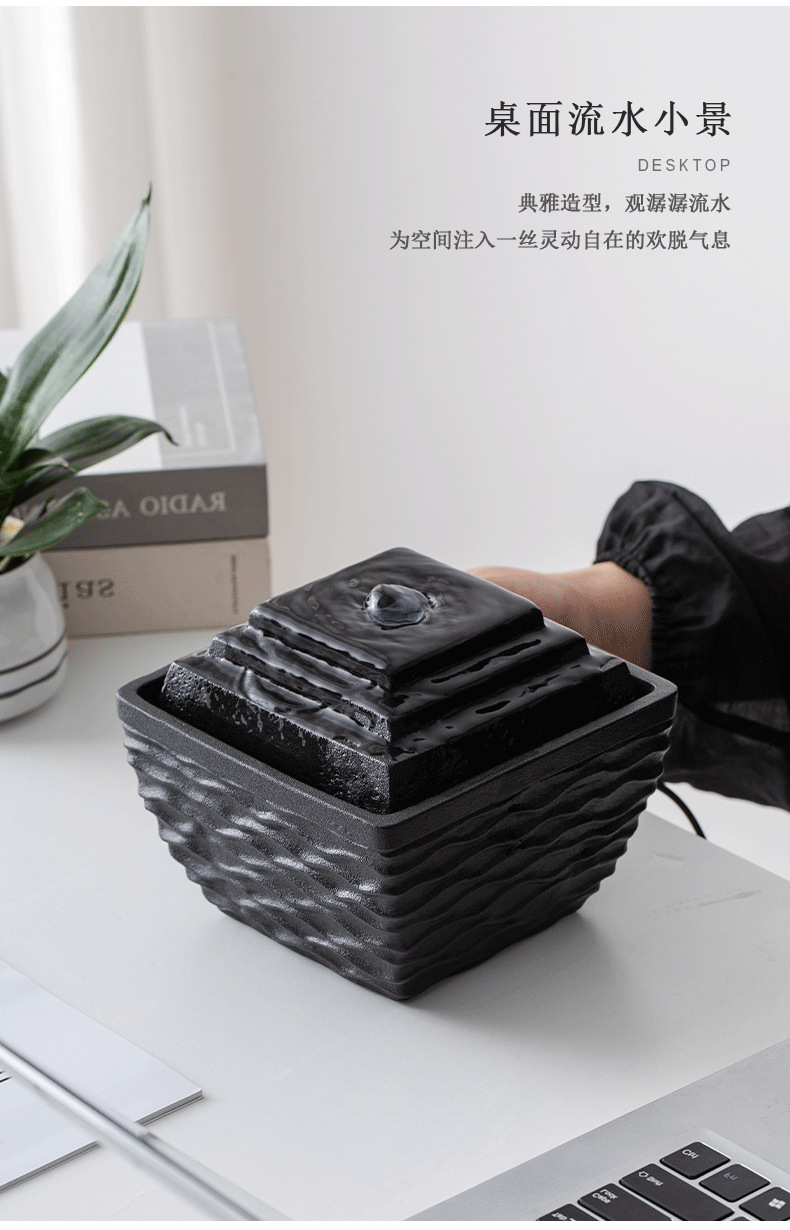 Fangyuan 흐르는 물 USB 세라믹 장식품 행운의 풍수 휠 데스크탑 분수 티 테이블 차 테이블 순환 워터 스케이프 장식