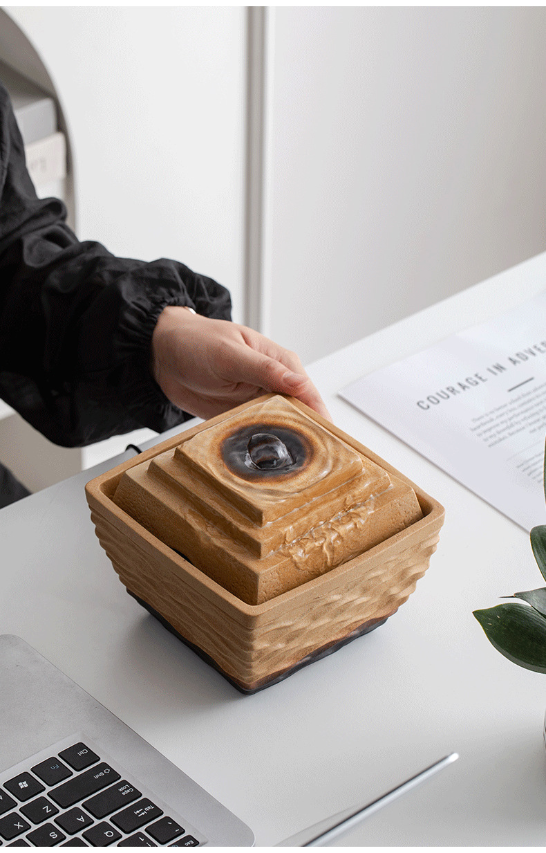 Fangyuan 흐르는 물 USB 세라믹 장식품 행운의 풍수 휠 데스크탑 분수 티 테이블 차 테이블 순환 워터 스케이프 장식스토어 가기