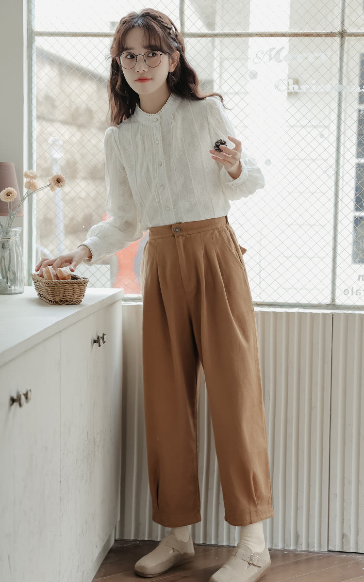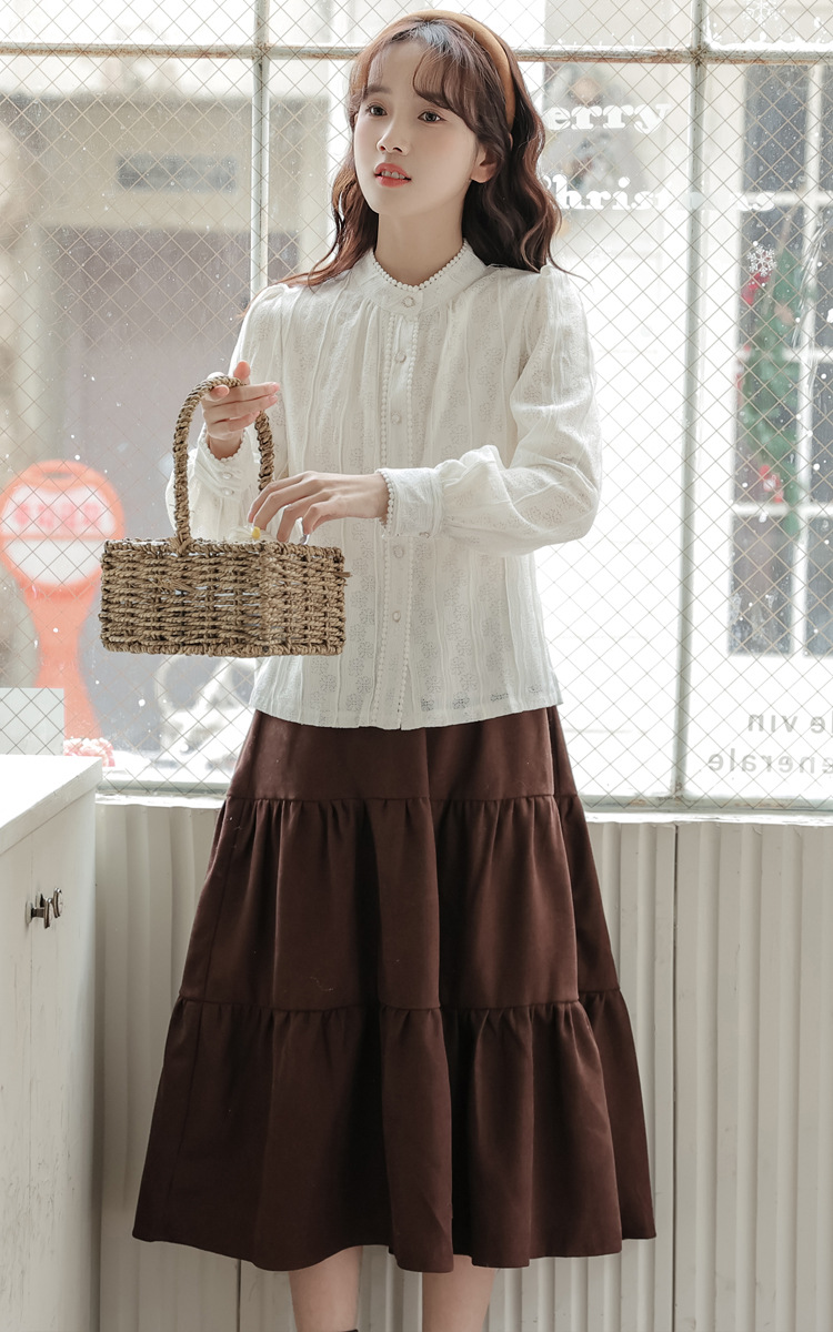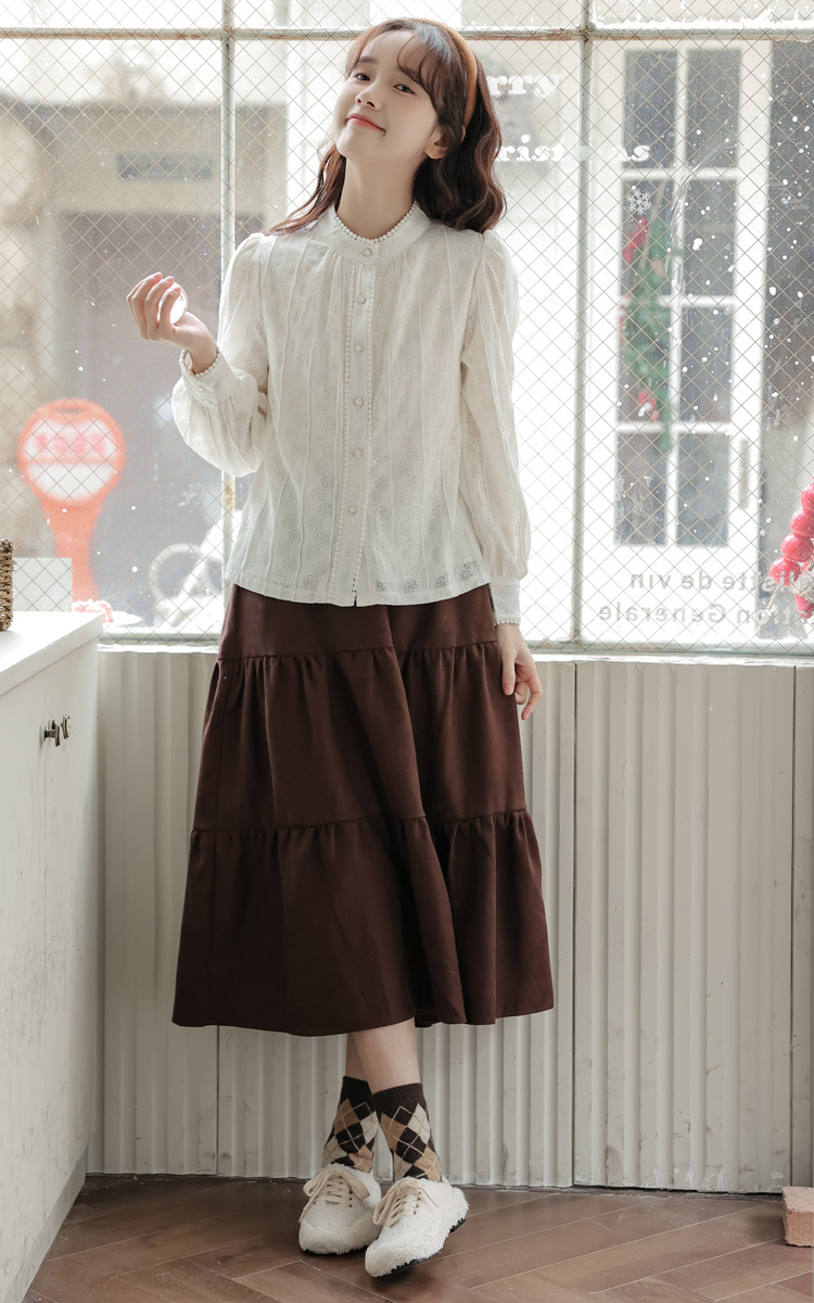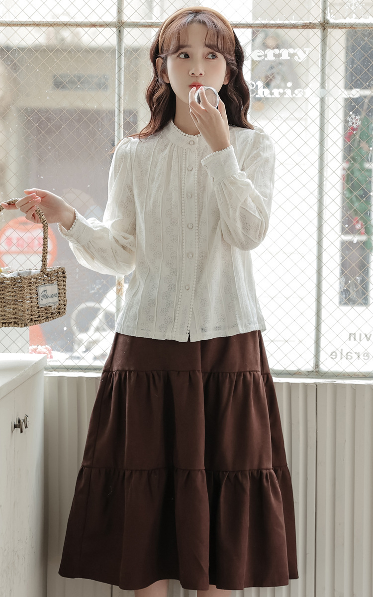 2025 봄 새로운 프랑스 부드러운 기질 스탠드 칼라 레이스 크로 셰 뜨개질 자수 긴 소매 아름다운 레이스 셔츠스토어 가기