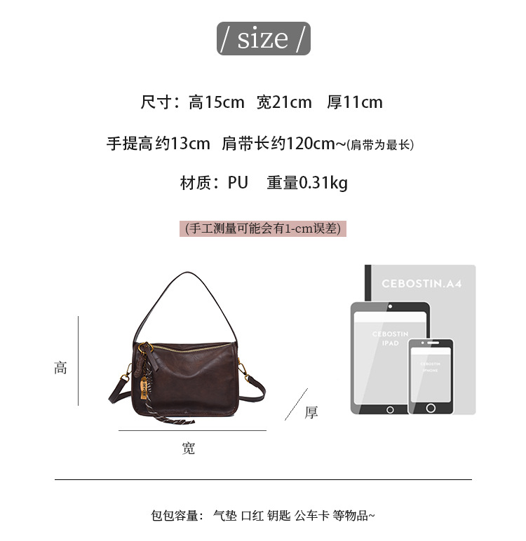 국경 패션 캐주얼 작은 광장 가방 여성 2024 겨울 한국 스타일 유행 올 매치 숄더 백 하이 엔드 틈새 여성 가방스토어 가기