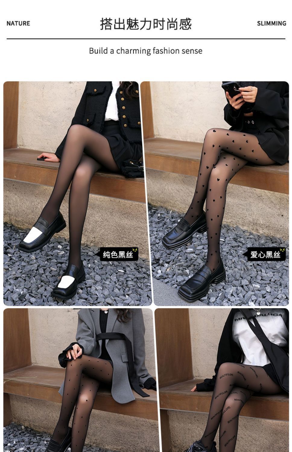 새로운 링크 폴카 도트 인쇄 검은 피부 투명 연애 편지 폴카 도트 레깅스 팬티 스타킹 가짜 피부-투명 여성의 봄과 가을 얇은 검은 실크스토어 가기
