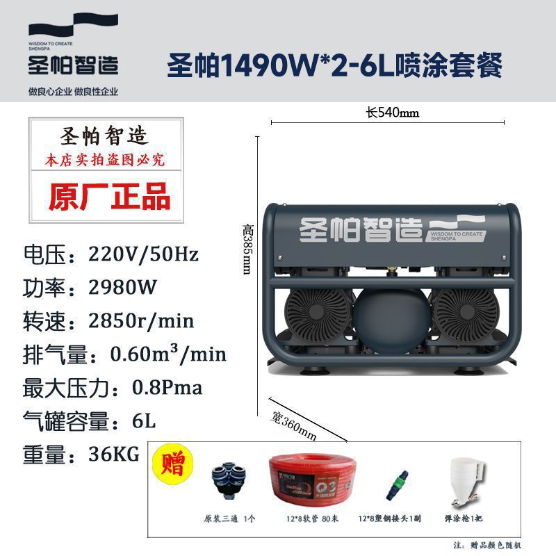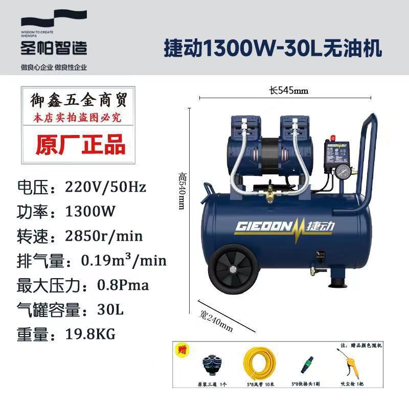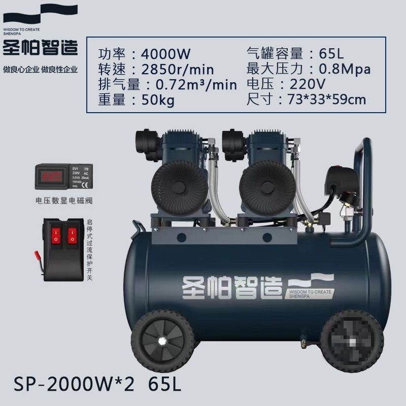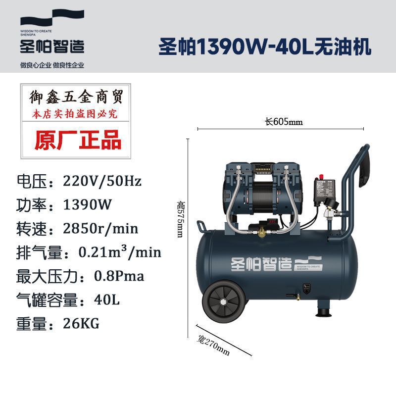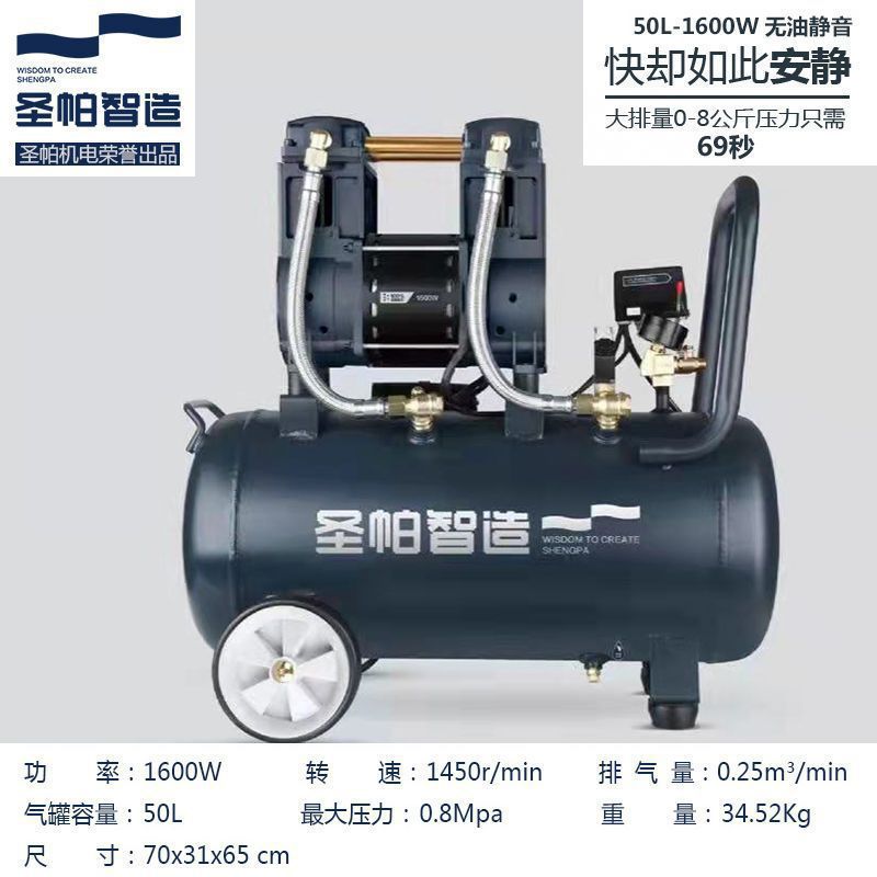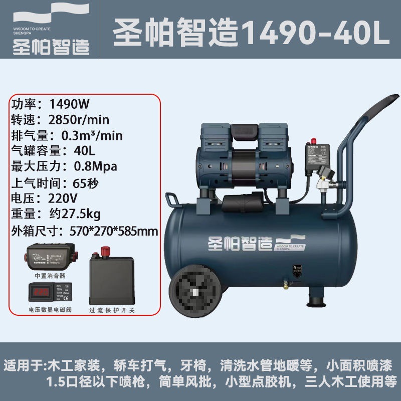 San Pa 조용한 기름없는 공기 압축기 30L 탐험 1390W 작은 공기 펌프 15L 목공 페인트 가정용 순수 구리스토어 가기