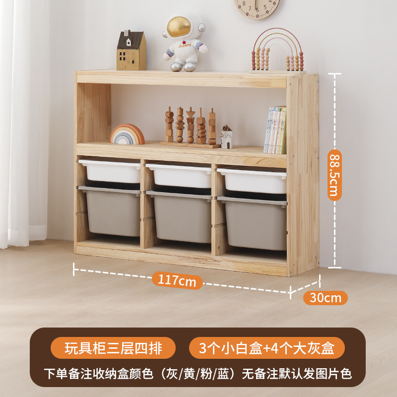 • 장난감 캐비닛은 4개의 층과 3개의 줄로 구성되어 있습니다. 큰 회색*3 작은 흰색*3 무료 충돌 방지 코너*2
