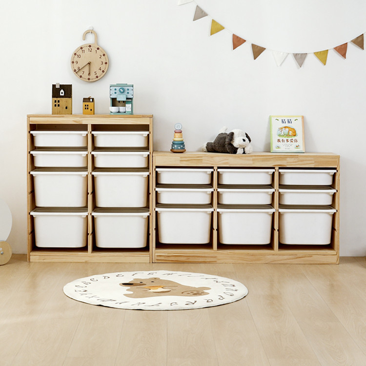 • 장난감 캐비닛에는 3개의 층과 3개의 줄이 있습니다. 큰 흰색*3 작은 흰색*2 무료 충돌 방지 코너*2